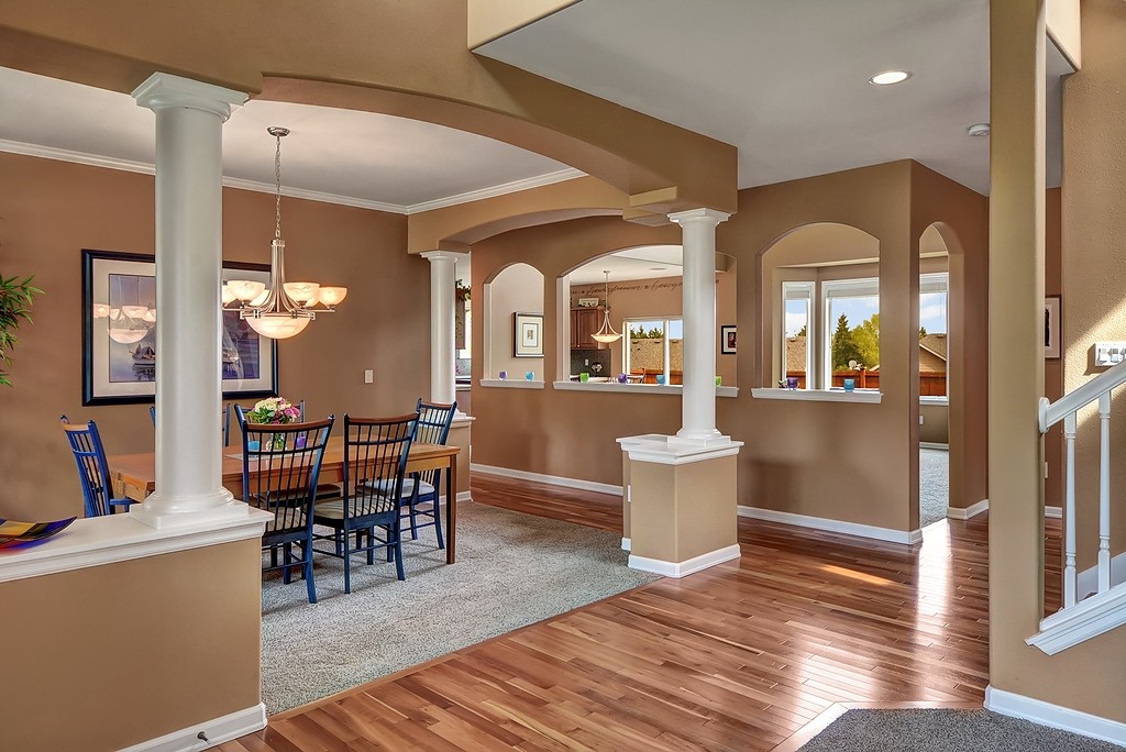 Former model home with all the bells & whistles. Stunning architectural details throughout this 3,000 sq ft showcase. Manicured yard overlooks community park. Chef's kitchen w/tile, slab granite, stainless & walk-in pantry. Gleaming hardwoods meander through the lower level. Grand 2 story family room w/cozy gas fireplace. Formal living, dining & home office. Expansive master w/vaulted ceilings, 2nd fireplace & sitting area, exquisite spa like bath. Mtn views & Exceptional Northshore schools!