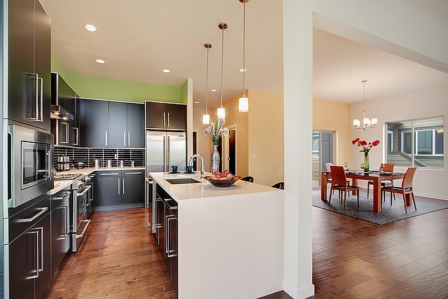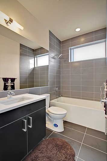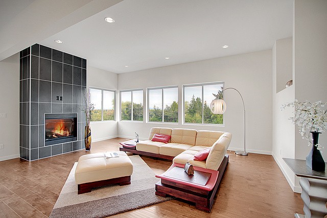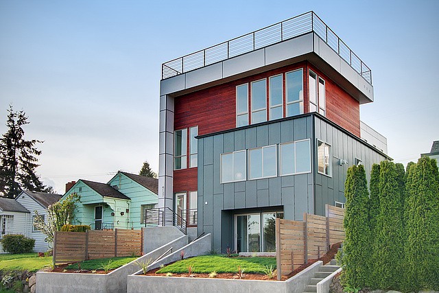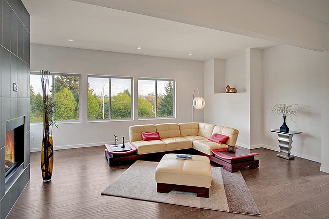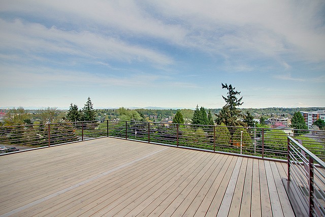 Brand New Hot Modern Construction with tons of Amazing Natural light. Open flowing floor plan, main flr features New natural oak hdwd throughout, Jenn-Air appliances, gas fp, walk-in pantry, private deck, & good sized 2 car garage. Upper level master bdrm with direct view of Mt rainier, huge master bthrm, 3 more large bdrms & don't miss the roof top deck with partial views of the emerald city! Lower level with a open media/rec rm, powder rm which opens up to a concrete patio.