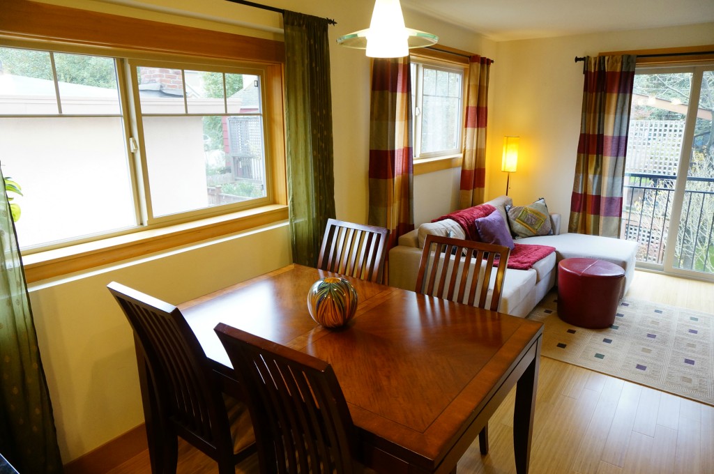 Close to parks, bus lines, yet off main street, so quiet! Off street parking, easy downtown access. Built in 2008, light pours in the many windows in this well designed & elegant open floor plan. 3 beds, 2.5 baths, the kitchen offers granite counters, cherry cabinets, pendant lighting, bamboo floors. Gas fireplace, fenced large patio for parties and gardens, this is without doubt the very best townhome, with these high end amenities, under 300K in West Seattle! Don't wait, this is a must visit!