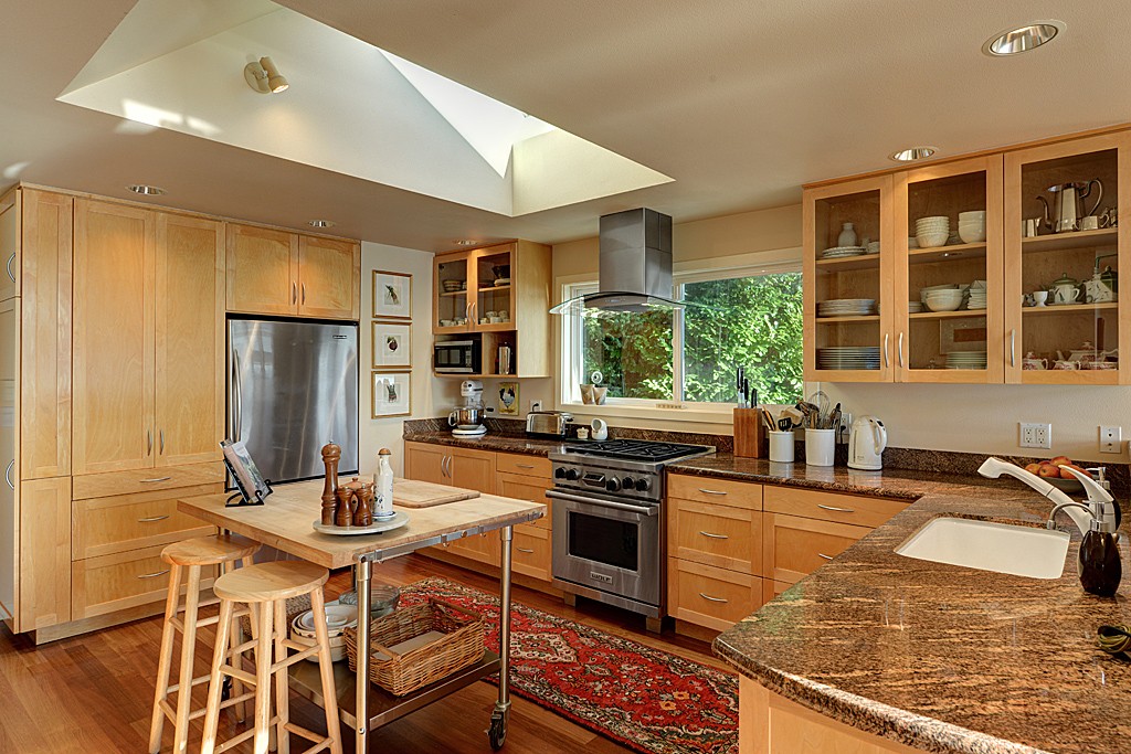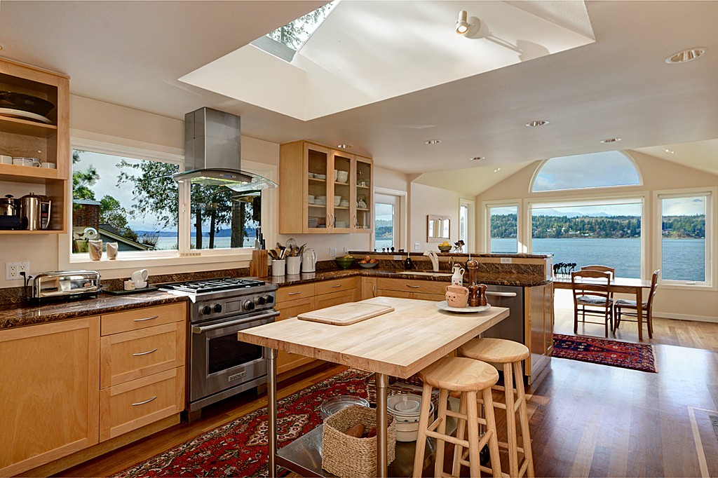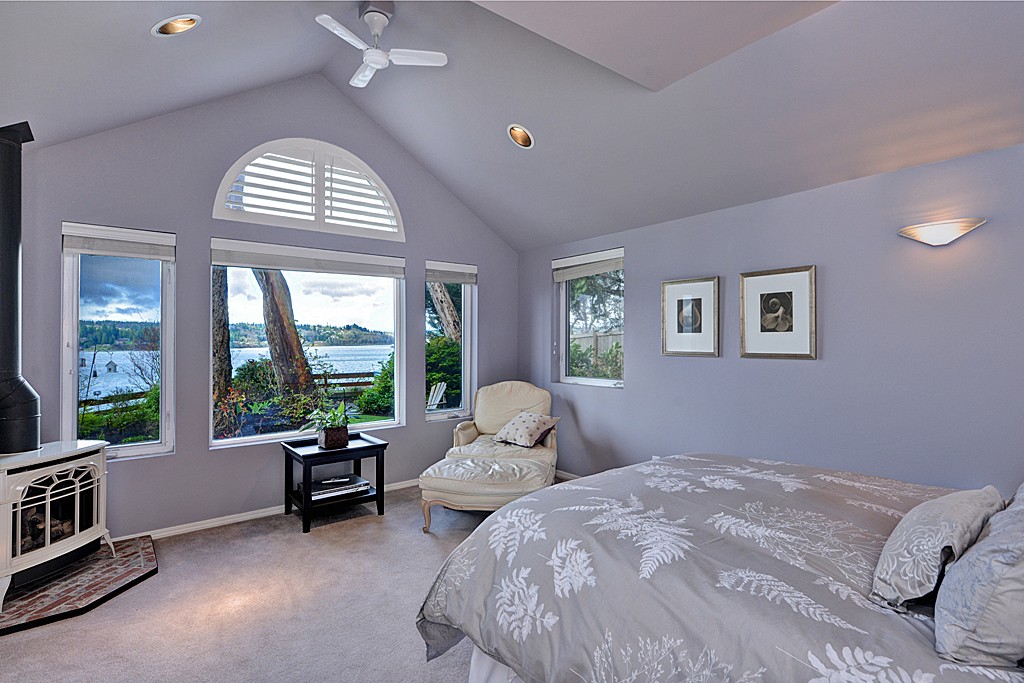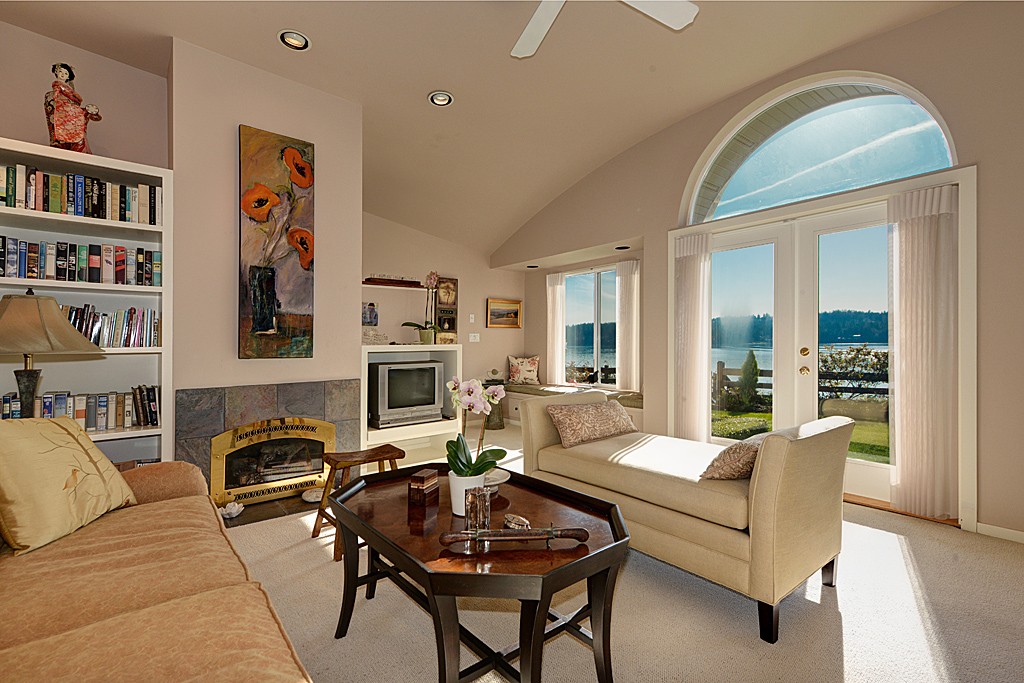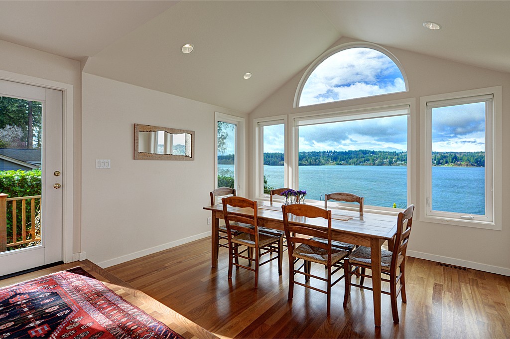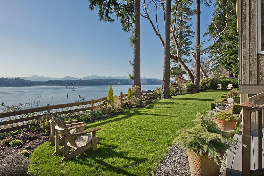 Sweeping sunsets across the entire Olympic Mtn range enhance the beauty of this 3 bedroom + office remodeled waterfront home. Retaining the charm of the original beach house, the home has a few stairs to the various rooms where every window provides unobstructed views of either the mature gardens or the water & mountain views. Easy stair access to the 100 foot fully bulk-headed beach plus a separate guest cottage (1,056 sq. ft) make this property one that you and your guests will love!