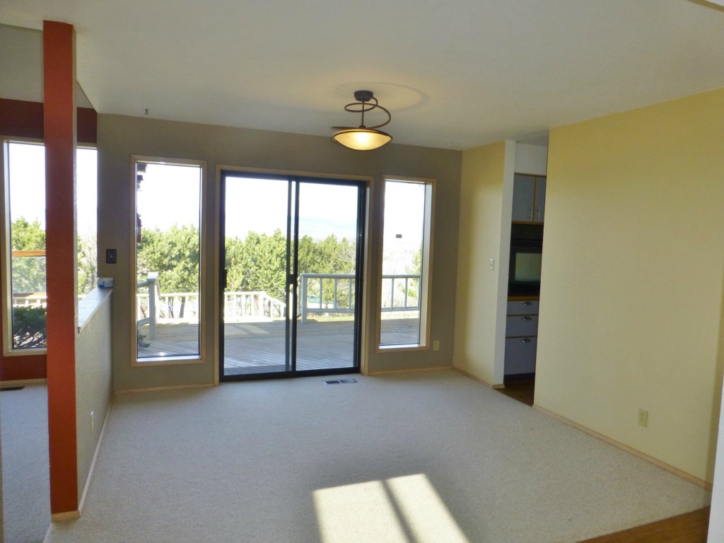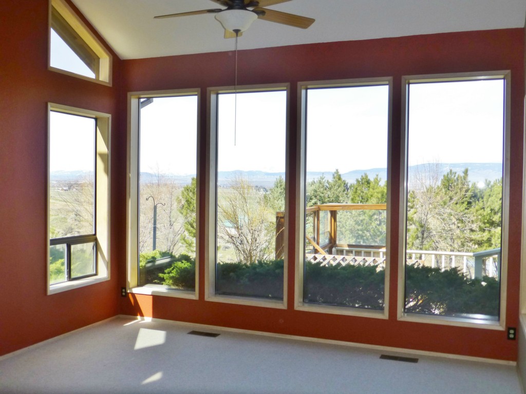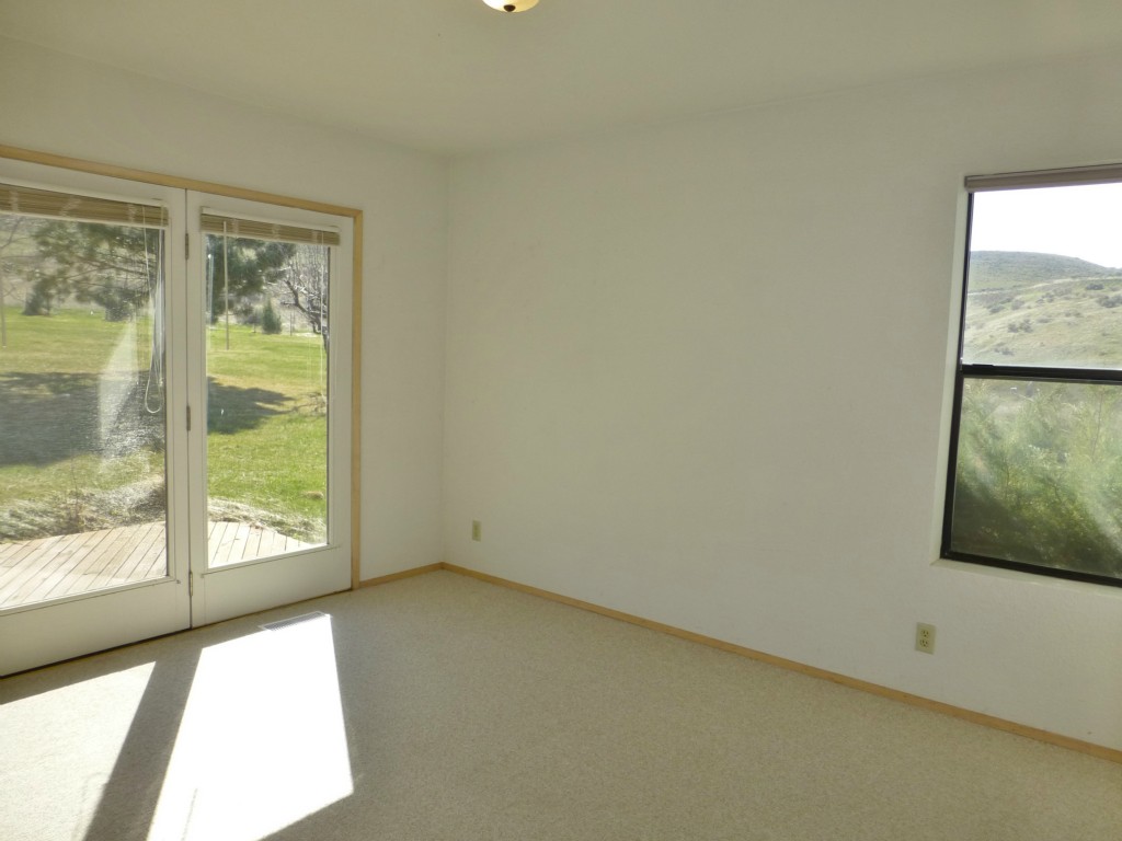 LOCATION, LOCATION! This home has awesome valley & mountain views & sits on a private 3.46 acres w/irrig. Paved road & driveway. The 2488 sf home features living rm w/view windows & brick fireplace! The dining rm & kitchen eating area have access to the large deck that is perfect for summer gatherings & enjoying the city lights while soaking in the hot tub! Family rm w/wood stove. Large master w/balcony has full bath w/jetted tub. Office, FA Heat and AC. Dble garage + carport & shop. Sprinklers