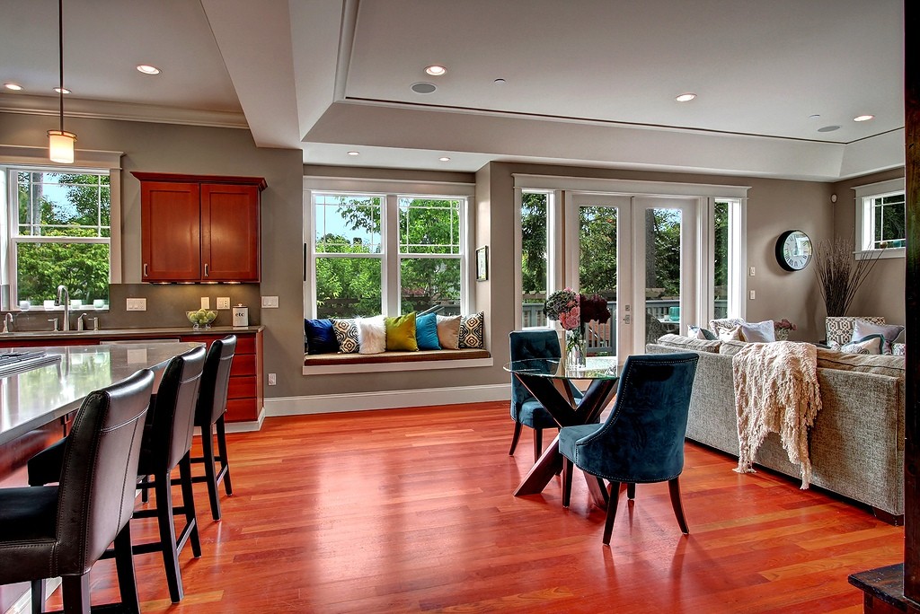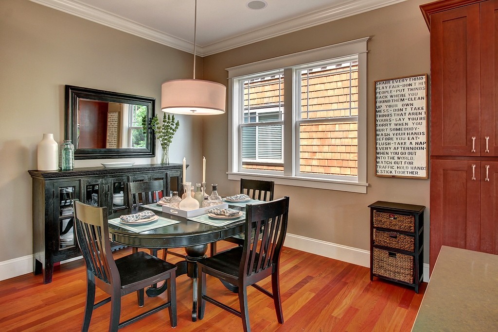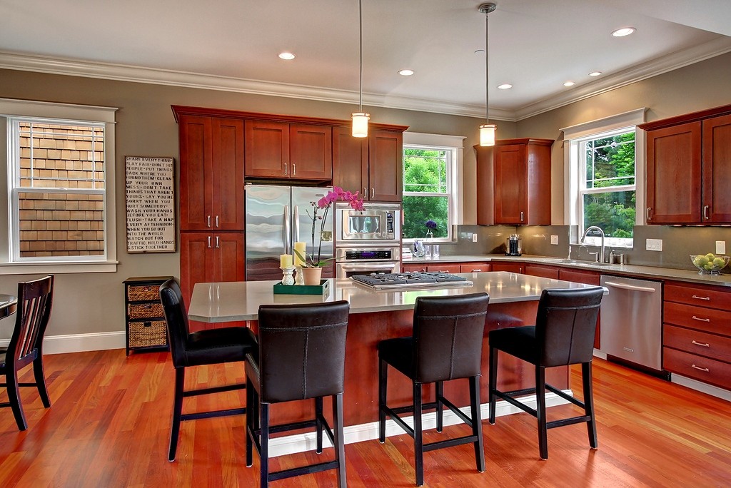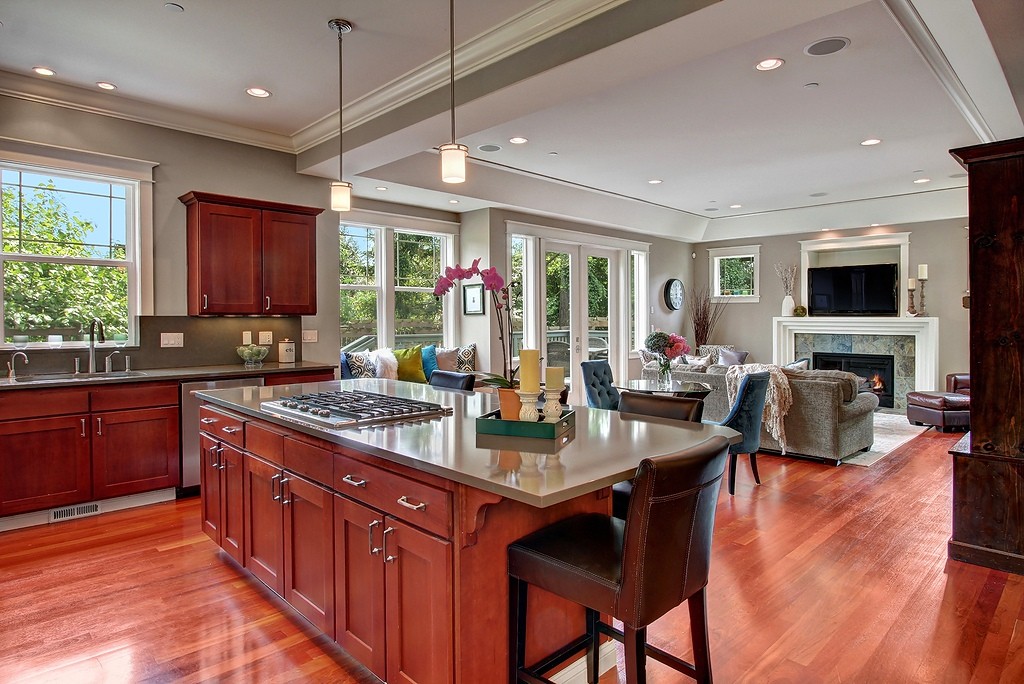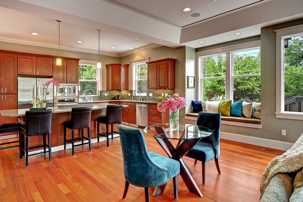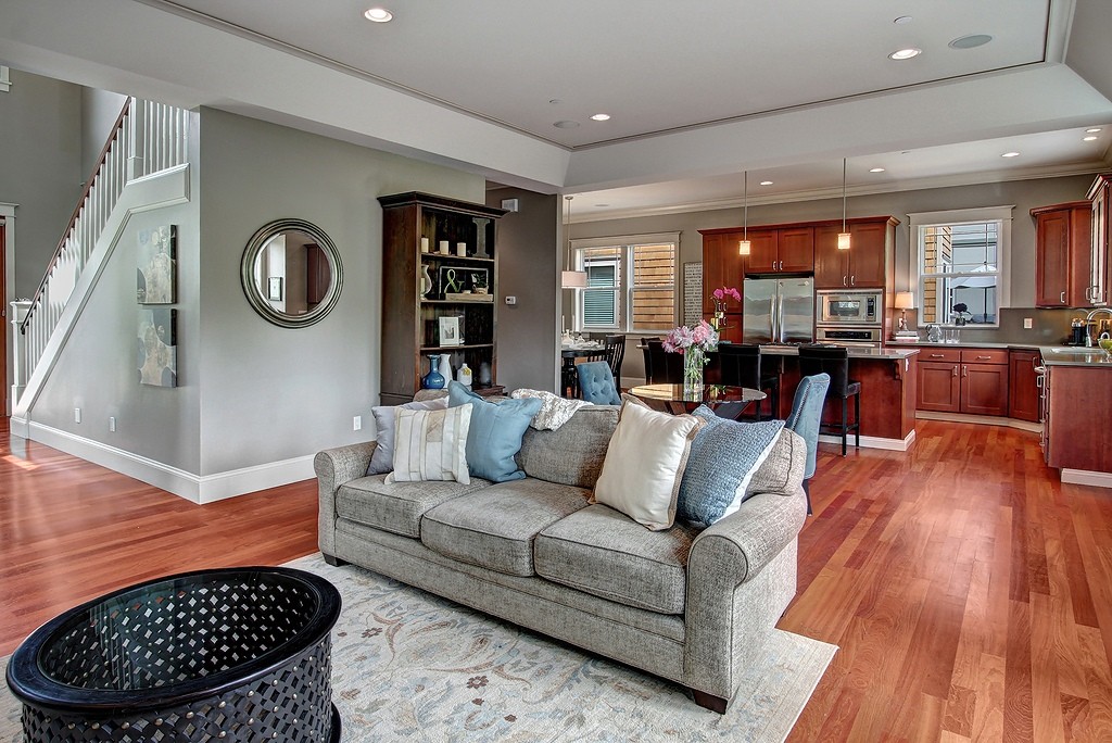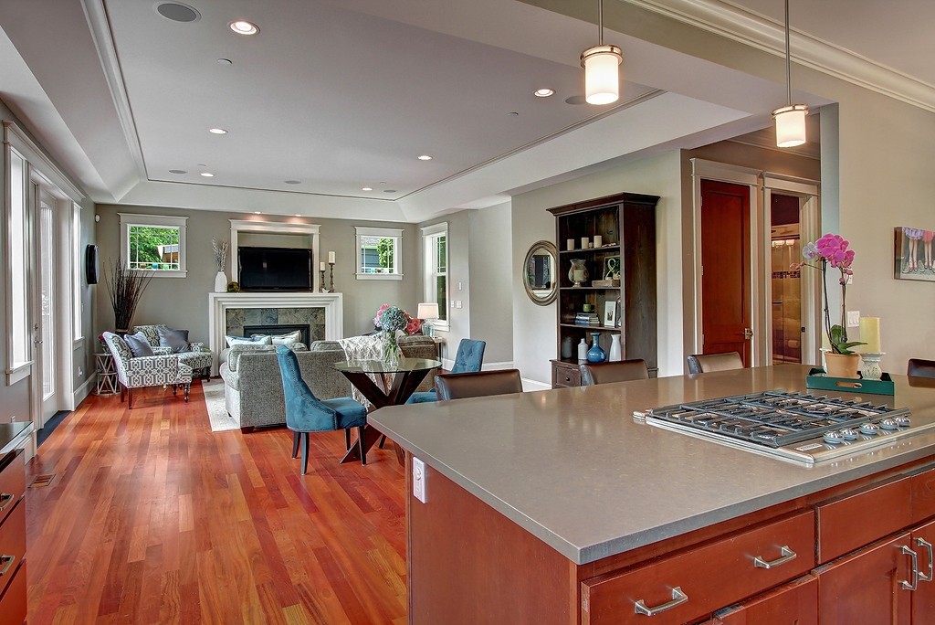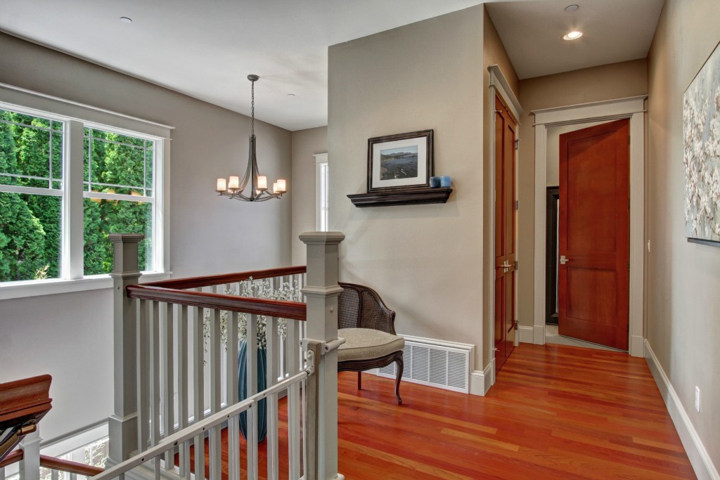 Signature lasting impressions throughout this hallmark Craftsman, a heritage blueprint in Seattle’s View Ridge, a 2010 model residence set back on this 6-home private lane. Throughout, where windows/ doors dramatically reach 10-ft high ceilings, lifestyles merge in great room hardwoods expanse, where ‘chefs’ indulge, retreat to relaxed formality in one of four quarters (one on main) or corner suite master/spa. Fling open wide French Doors to expanded deck, lush green privacy and room to play.