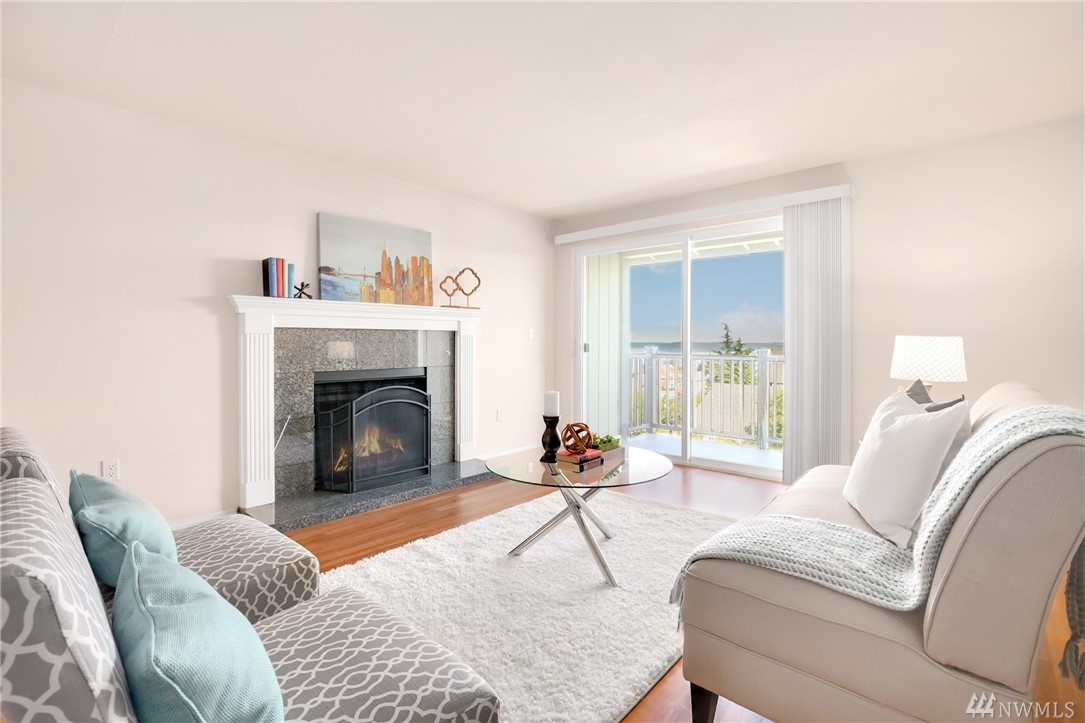 Spectacular Commencement Bay VIEWS! Open floor plan connects living & dining areas to kitchen with granite counters–all appliances included! Two generously sized bedrooms,updated bath,& laundry space.Laminate wood floors,wood burning fireplace,modern white millwork,updated vinyl windows,tons of storage,& abundant parking! Enjoy the stunning sunsets from the private, covered balcony! Convenient location close to I-5/Hwy 509/Hwy 16, Ruston,restaurants & shopping.Come enjoy urban Tacoma living!