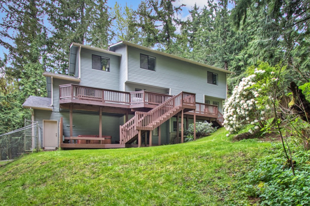 Modern elegance meets nature's paradise w/this lovely home in Ames Lake. Ideal floor plan w/formal living & dining, open kitchen & large family or bonus room on the main floor. Upstairs boasts 3 bedrooms, including master, plus 2 full baths. Daylight basement offers more bonus space plus area for den. Kitchen w/ granite slab counters & updated cabinets. Entertain at large private layered deck w/hot tub overlooking wooded & fully-fenced lush property. Comes w/ RV parking, dog run & lake access.
