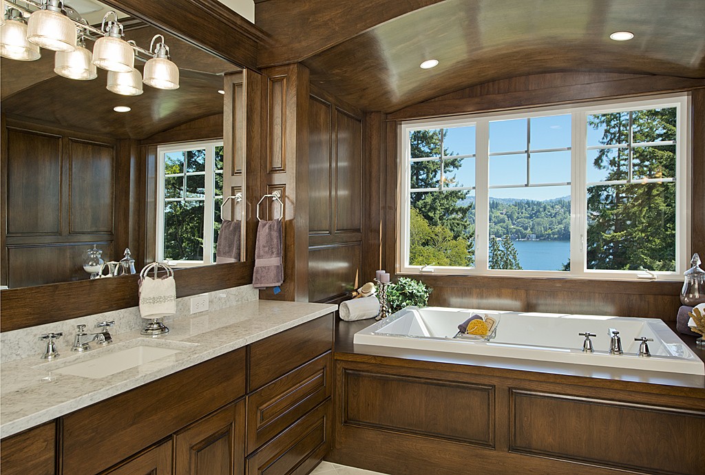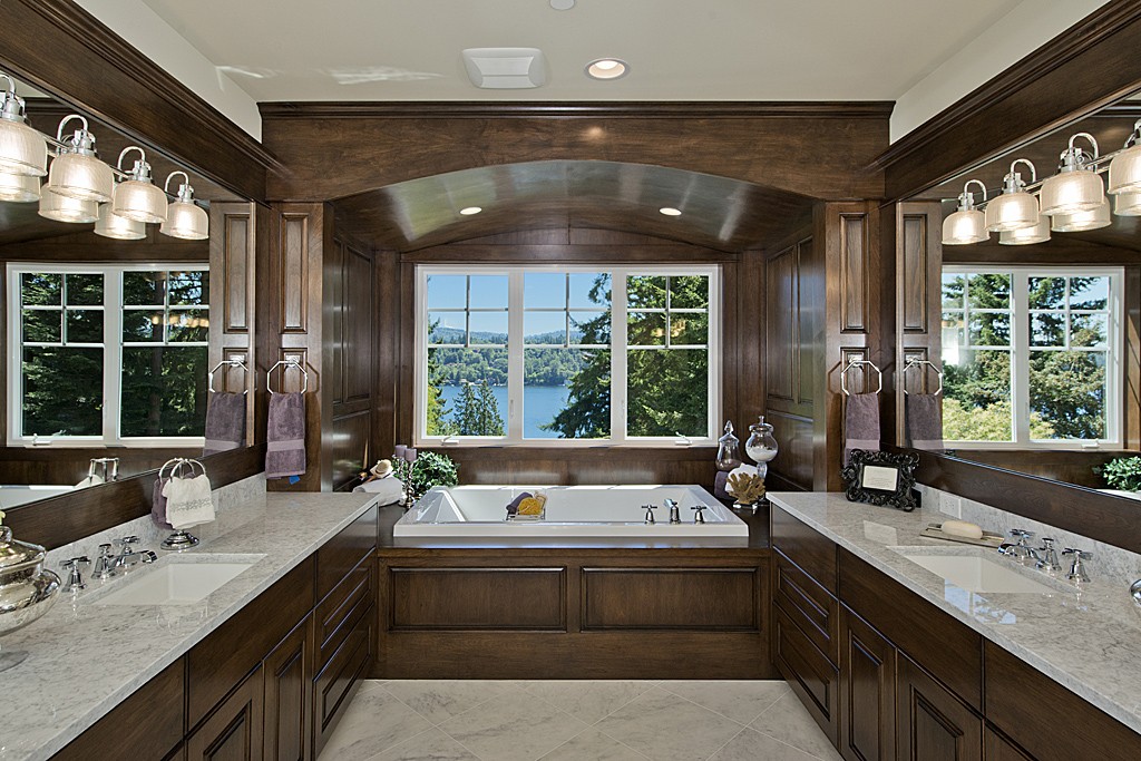 A spectacle of craftsmanship & elegance. This grand residence blends traditional architectural elements with today's NW living. A 2 story wall of windows showcase the lake & mtn views. French doors entice guests to move freely between indoor & outdoor living areas. Professional grade chefs kitchen. Extensive marble & natural stone thru-out. Boxbeam ceilings & ext. stained millwork detail. 4th B/R serves as guest suite.