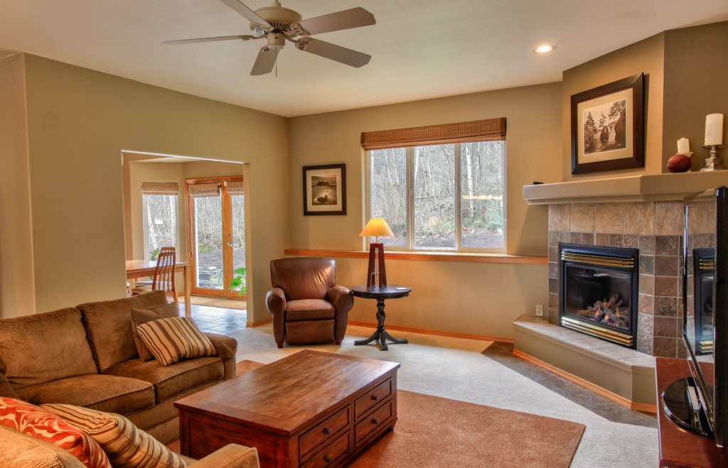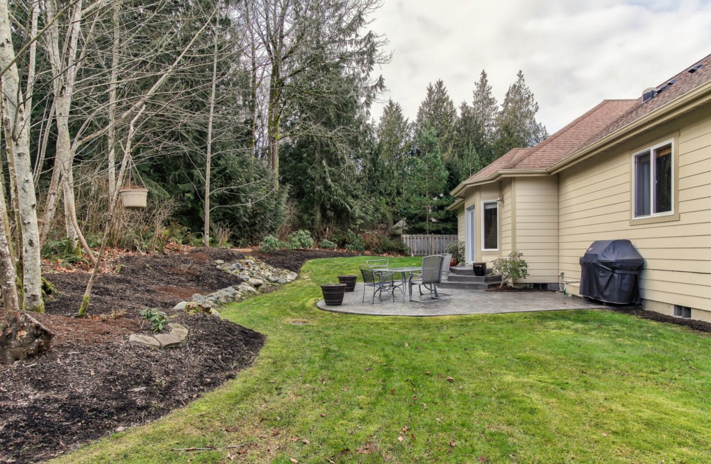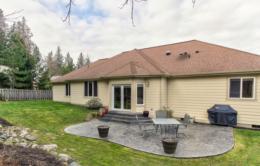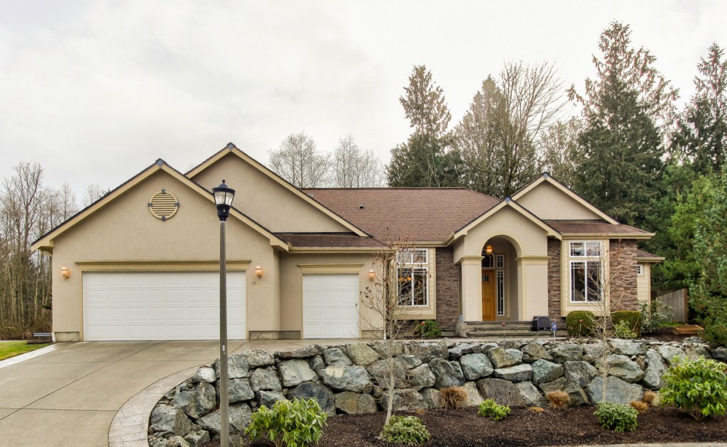 Spacious & elegant rambler in one of NW Washington's premier golf course communities! Open floor plan w/great room, high ceilings, large windows, gas fireplace, jetted tub in master, beautiful ceramic tile, stamped concrete patio and much more- all tastefully appointed. Stucco exterior for ease of maintenance - the house is sited on a corner lot on a quiet dead-end street and backed by a greenbelt. A large 2 car garage w/shop area provides ample storage. Come see this comfortable home!
