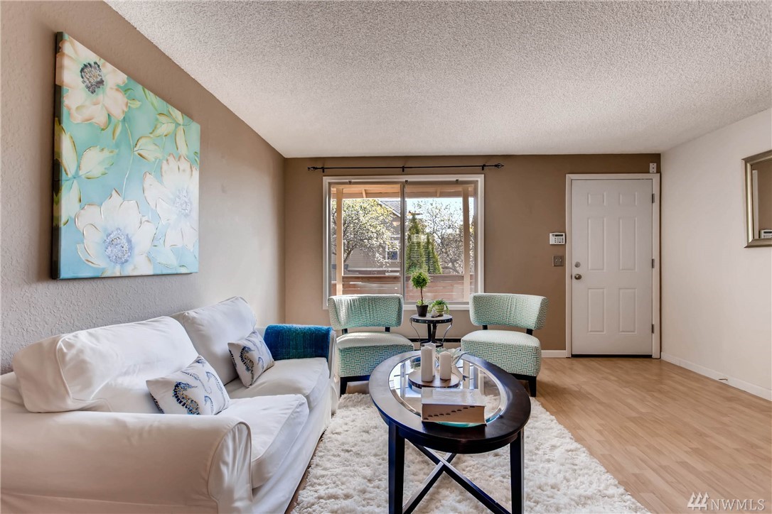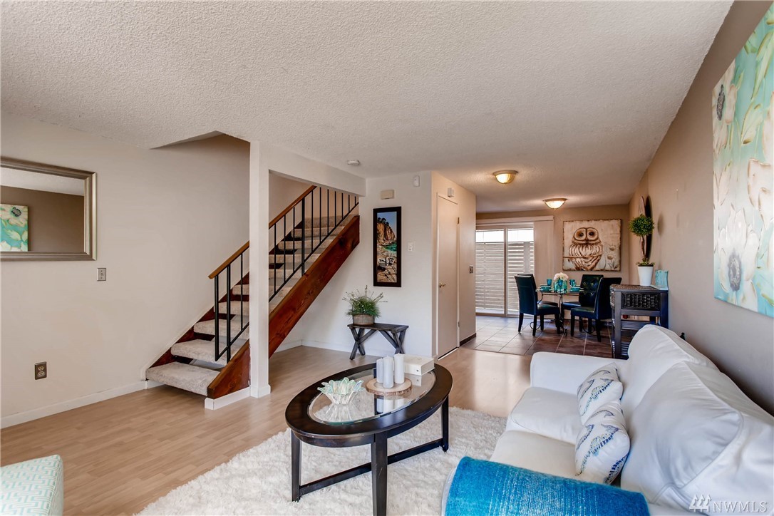 Light and bright two story 2 Bedroom condo offers the perfect maintenance free lifestyle you are looking for! The main level has an open living room, dining area and updated kitchen which opens to a private deck. In unit W/D. Centrally located, close to several bus lines, near I-5 & I-90 freeways, the International District, Safeco field, and DT Seattle. Well run HOA with only 4 units in the building.