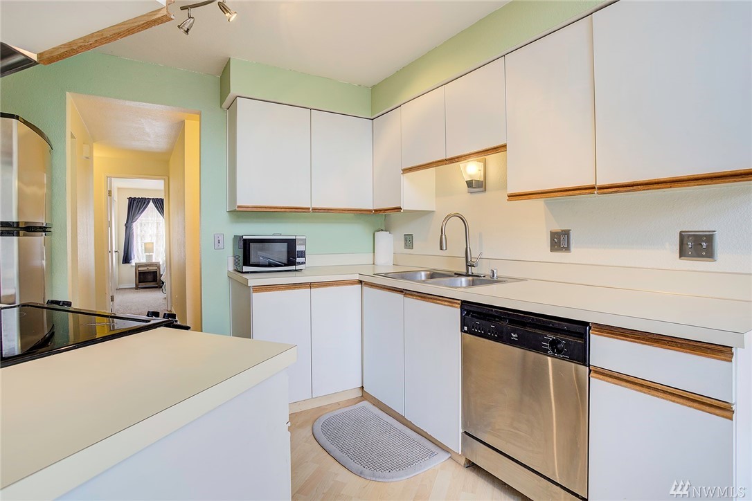 Quiet, top-floor, corner unit with tons of natural light! Convenient, open floor plan. You are able to entertain larger groups in this home with room for everybody! Cozy, wood-burning fireplace to enjoy this fall and winter! Spacious deck allows for outdoor living! The deck is a great place to just sit and relax, read, throw a burger on the BBQ or show off your green thumb! Edmonds school district! 2 reserved parking spots.