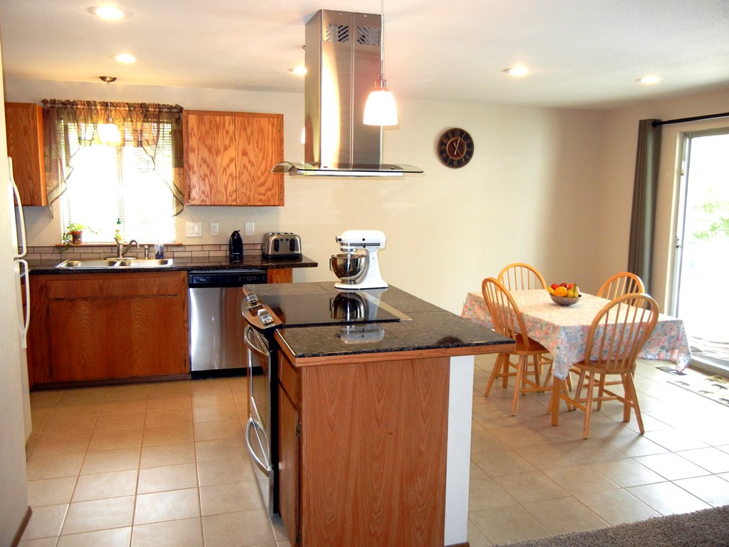 Nicely updated! Open kitchen, cooking island, stainless range hood, granite counters, new carpet, cozy wood stove, brick hearth, air conditioning, natural gas furnace, 3 bedrooms, master with 3/4 bath, fresh exterior paint, 576 square ft shop with 220v power, automatic door, RV parking, 2 car attached garage, 16' Climbing Wall! A lot of room in this square footage. Security system with cameras.