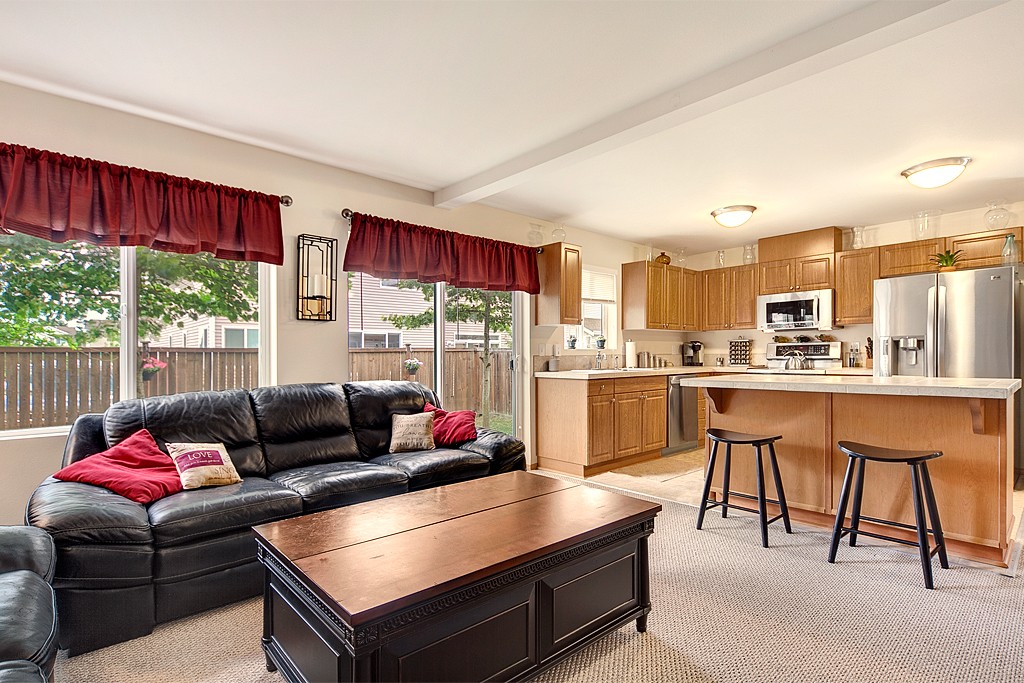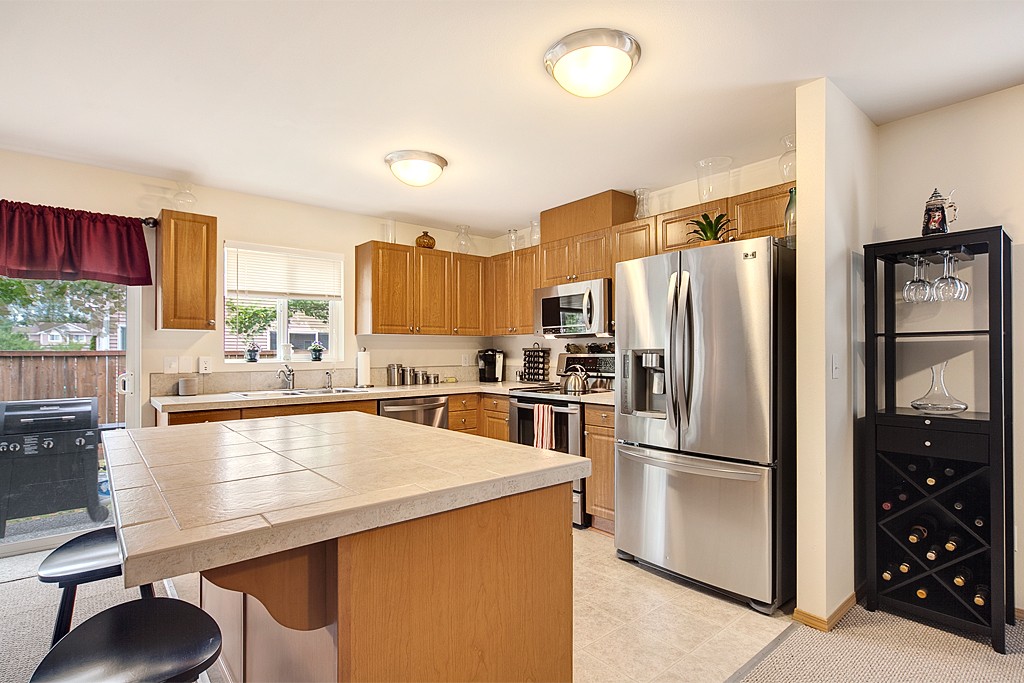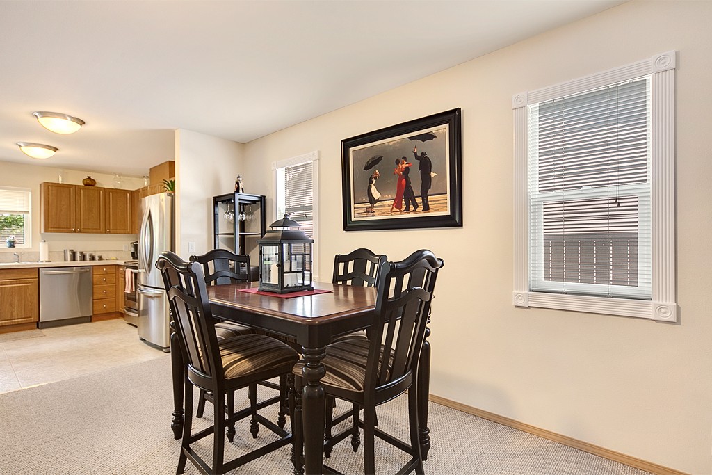 Welcome home to your beautifully maintained 2-story townhome located in the charming city of Maple Valley. Free flowing main level features a an open kitchen w/a gorgeous tile island as the center piece between the living & dining rooms. Enjoy sparkling stainless steel appliances, ample cabinet space & a sliding glass door to your fenced back yard and patio. Both upstairs bedrooms are spacious w/individual bathrooms. Your new home has plenty of storage space w/a spacious garage & large closets.