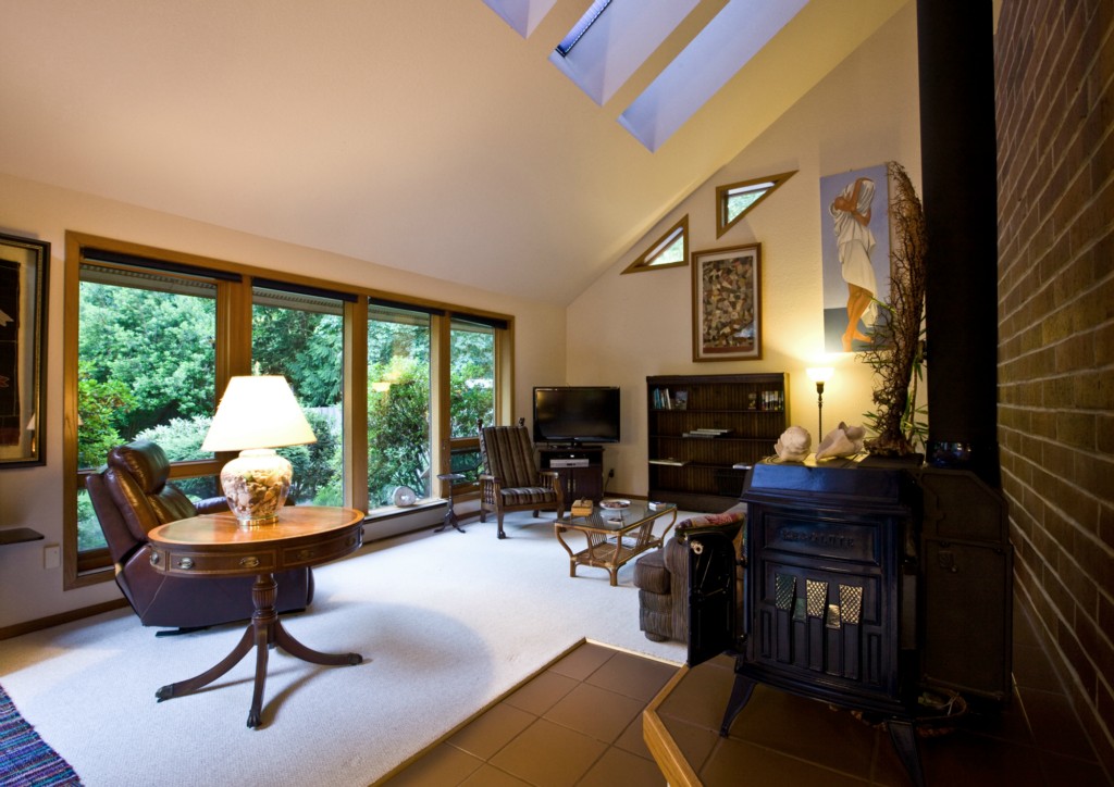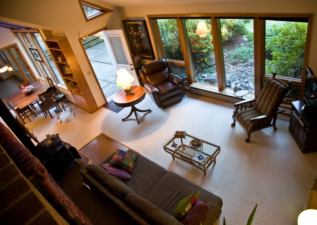 The best the Northwest has to offer! Sited on a fabulous piece of property, this home offers grassy knolls, shaded woods, planting areas and shady retreats. Uniquely different, this architecture and floor plan will please a discerning buyer. There are several flexible spaces- Use as office, bonus space, artist’s loft? Wonderful master suite with adjoining office/den and ensuite bath is a truly private retreat. Kitchen and dining open to vaulted main living space. Views to nature from most rooms.