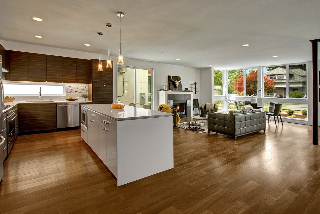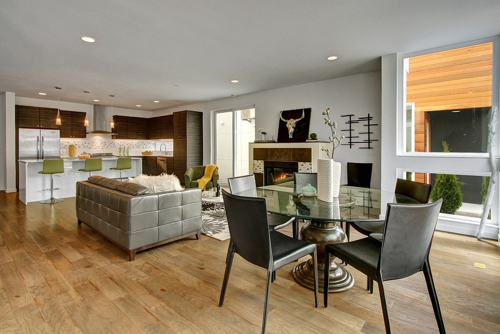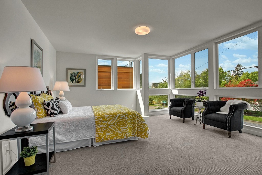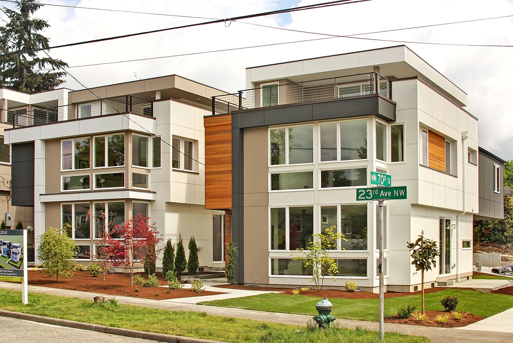 Wonderful new Modern by Isola Homes. Great Ballard location and popular neighborhood, nearby Salmon Bay Park. Nice, bright open spaces, innovative and sustainable design, with hardwood floors, quartz counter tops and kitchen/great-room concept. Three bedroom, two baths upstairs, with spacious master and contemporary details. Terrific media/entertainment area on third level with large sunny deck. Two car garage and cute yard. 4 Star Built Green. A well built home by a dependable builder.