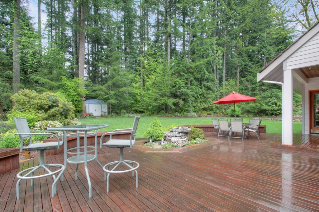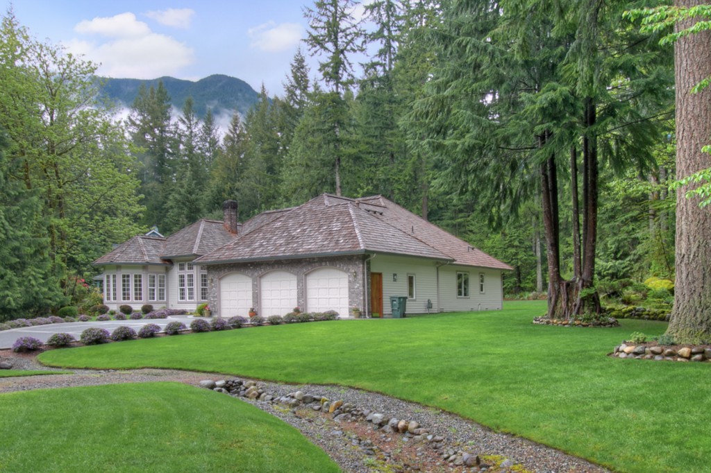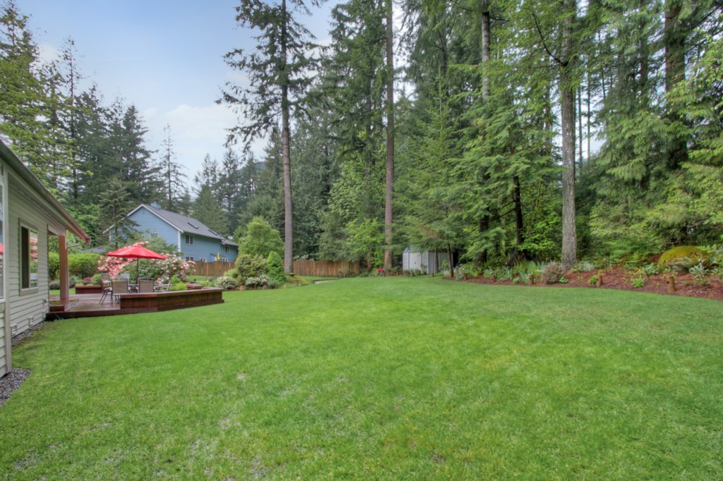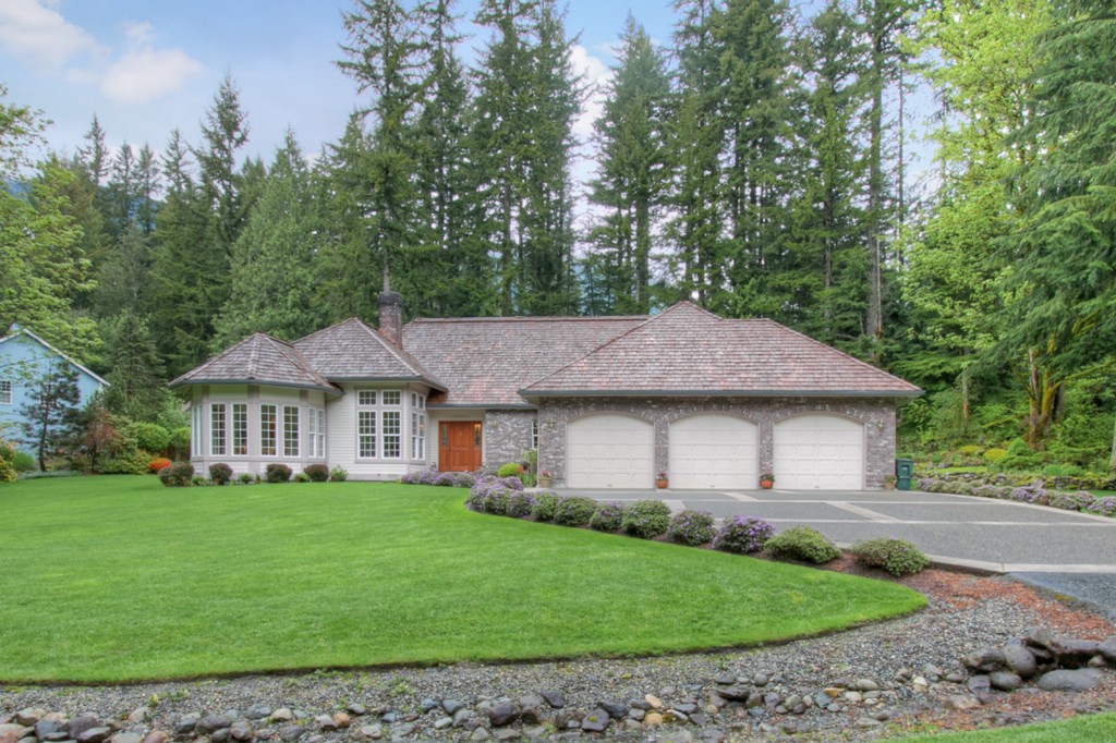 Impeccable RAMBLER located on a large & sunny lot on cul-de-sac, near Mt. Si trailhead, located in Middle Fork. Intelligent floor plan.Entry welcomes you w/oak hardwoods, 12’ ft coved ceiling & den. Large open kitchen offers nook, pull-out cupboards, built in desk & walk-in pantry. Formal dining, great-room off kitchen w/soaring ceilings & gas river rock fireplace. Elegant master suite boasts high ceilings & French doors to huge cedar deck. Putting green & pristine grounds, gardener’s paradise!