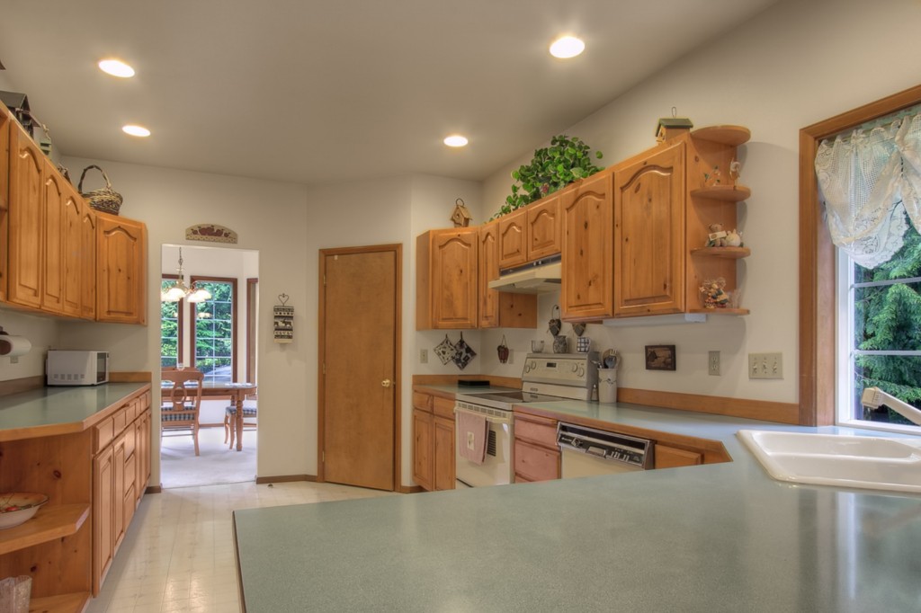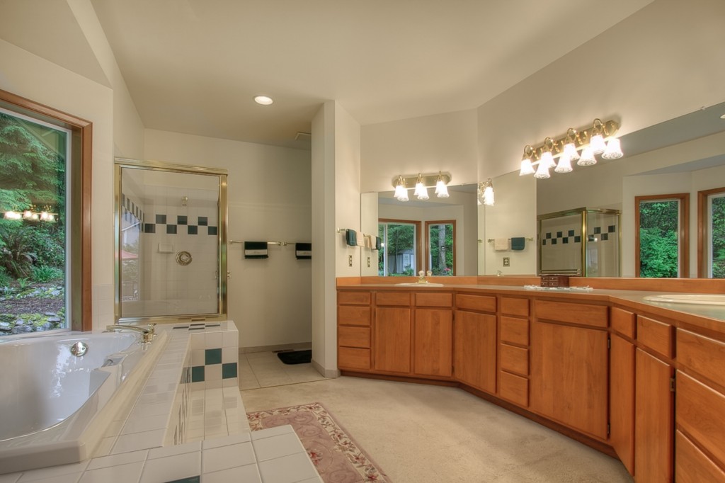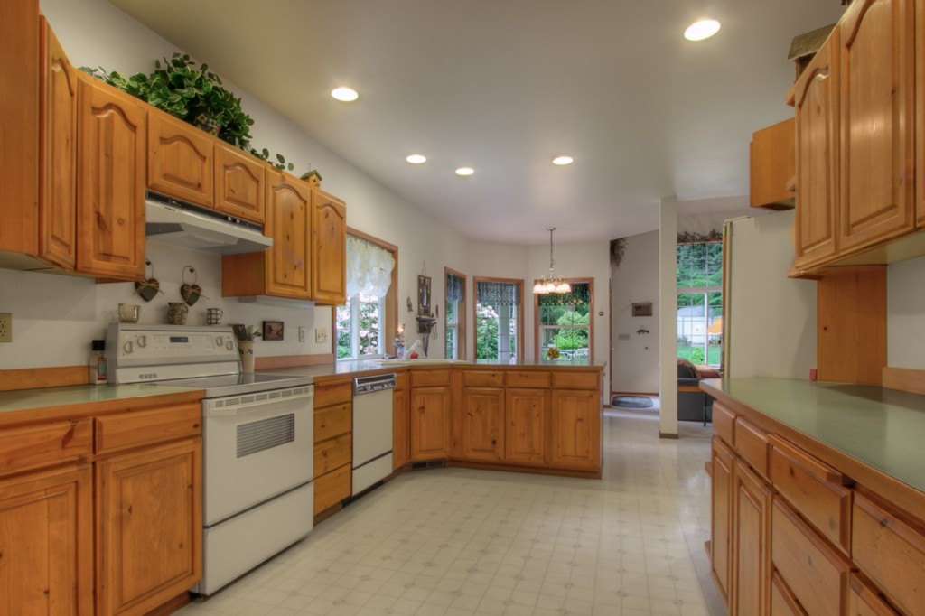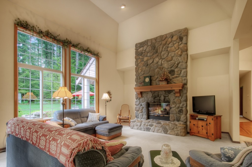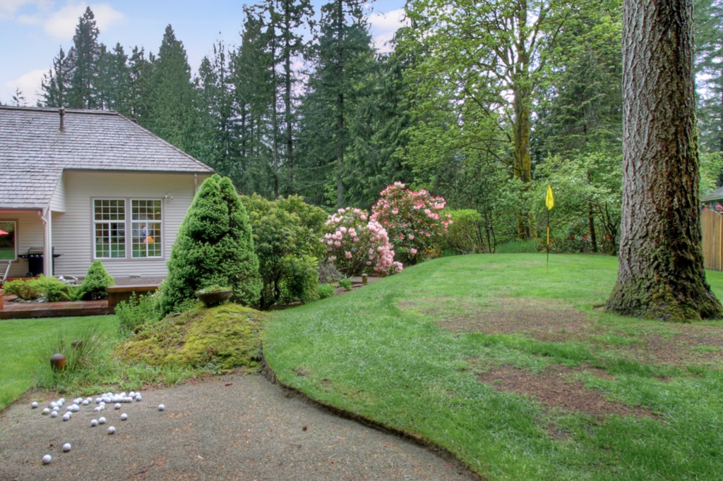 Impeccable RAMBLER located on a large & sunny lot on cul-de-sac, near Mt. Si trailhead, located in Middle Fork. Intelligent floor plan.Entry welcomes you w/oak hardwoods, 12’ ft coved ceiling & den. Large open kitchen offers nook, pull-out cupboards, built in desk & walk-in pantry. Formal dining, great-room off kitchen w/soaring ceilings & gas river rock fireplace. Elegant master suite boasts high ceilings & French doors to huge cedar deck. Putting green & pristine grounds, gardener’s paradise!