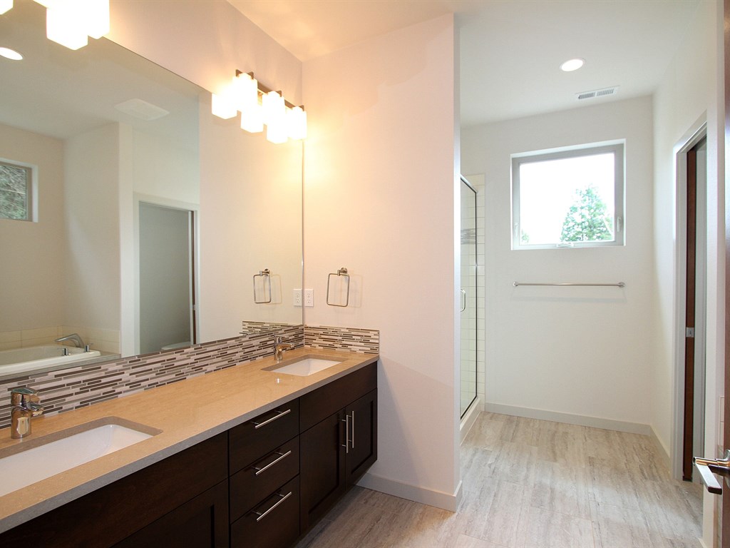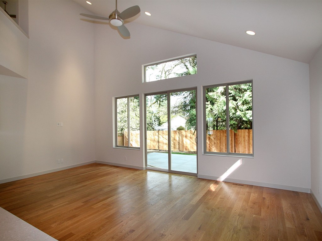 Modern New home on private lot with mountain view, set-back from street, close-in neighborhood near Matthew Beach & BG trail. Open floor plan with balcony overlooking large Great Room with wall of windows & patio doors to backyard deck. Extra tall ceilings, painted mill work, designer lighting. Cooks kitchen with Alder Cabinets, slab quartz counters, glass tiles, high end appliances. Formal living room & main floor powder room. Top floor master suite with 5 piece master bath.