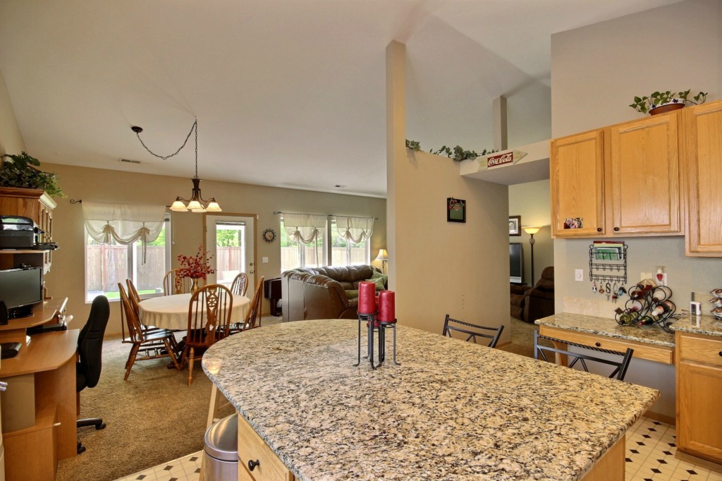 Spectacular Rambler in quiet community with great updates! The immaculate home features: tall 9 ft. ceilings throughout, newer interior and exterior paint, new light package, new roof in 2011, new hot water tank, new furnace- heat pump and AC with washable filters, new garage opener, newer appliances, wired for generator. Kitchen features granite counter tops w/ large island. Backyard features covered patio, big toy, shed, RV pad, and ample space for a garden.