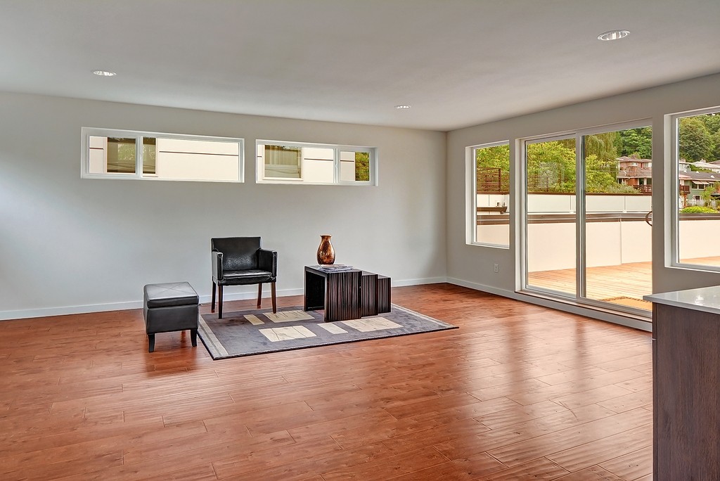 Beautiful modern new construction just steps to Lincoln Park in West Seattle. Open great room, spa worthy master, chef's kitchen, bonus roof level fun room or optional 4th bedroom. Spacious 2 car garage for all the toys. A must see laundry room rounds out this turn key home!