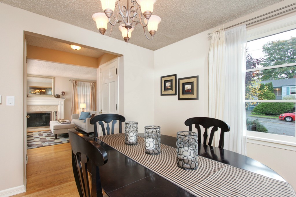 Nicely updated home in the heart of Bryant. 4 Bdrms, 2.25 baths, elegant living rm w/classic frpl, formal dining, updated granite & SS kitchen, hardwoods throughout. Totally new upper level w/vaulted ceilings, large master, new tiled ¾ bath & sweet bdrm. Swanky home theater/media room, gas frpl & full wet bar down. Many upgrades: networked home, new windows, newer roof, new electrical & plumbing. Wonderful location! PCC, parks, U-Village, Children’s Hosp & UW. Commute by car, bus or bike!