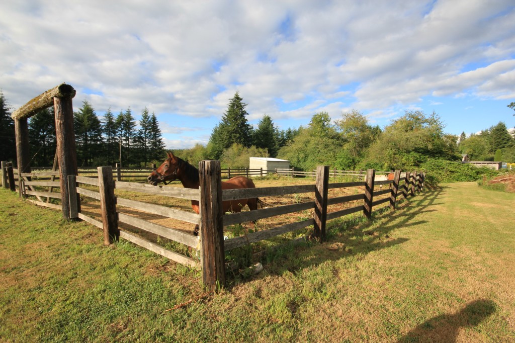 This one has it all! Updated w/ fresh paint inside & out, remodeled bath & more, this spacious home boast fabulous mother-in-law quarters w/ separate entrance, master suite w/ huge, jacuzzi tub, large open concept living space w/ cozy, wood stove, & French doors to newer wrap-around deck. Excellent horse property. 5-stall barn, 1500 shop w/ add. 300 sq' loft. Koi pond, mature fruit trees, 5 cross fenced pastures.