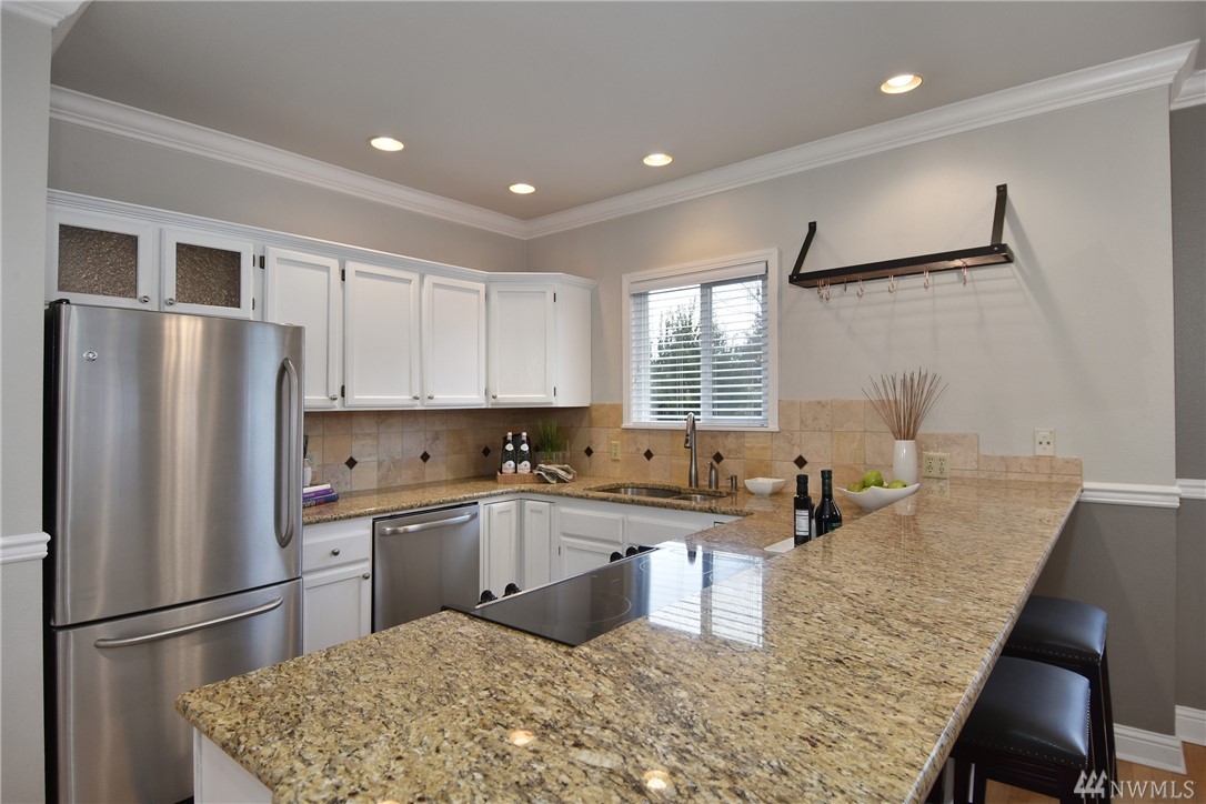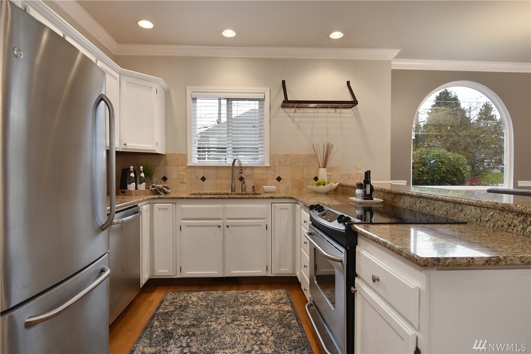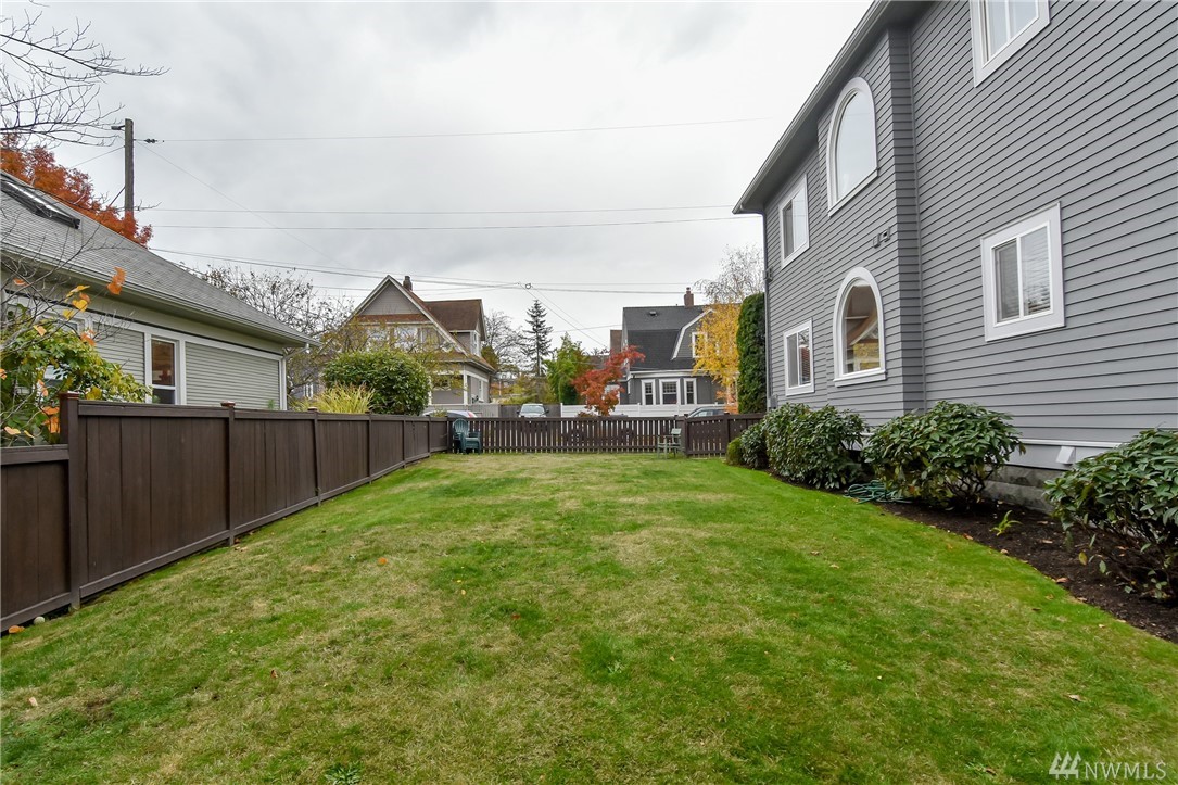 Private corner unit w/ own entrance from exterior feels more like a home than a condo. HW floors throughout, gourmet kit w/ SS apps, granite counters and wood cabinets. Warm yourself in front of the gas FP on a rainy Seattle day. In addition, this unit features period moldings, large closets, laundry w/W/D & large storage unit. Recently painted interior and brand new exterior paint. Abundant natural light w/ lots of windows, access to a large fully fenced yard for BBQ and soaking up sunshine.