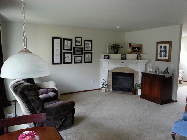 Immaculate home at end of culdesac. This charming home with covered porch has wood floors, tile counters, breakfast bar/island, walk in pantry, gas fireplace, master with full bath, private backyard, patio off the kitchen with waterfall feature and fire pit, garden space behind the shed, workshop space in the 2 car garage, new exterior paint and more.