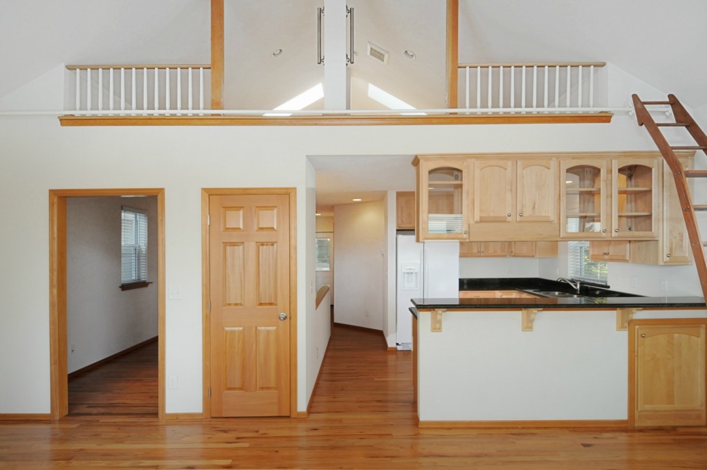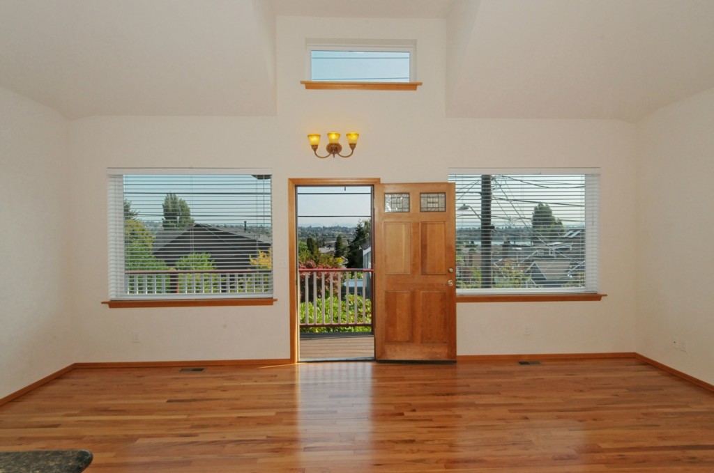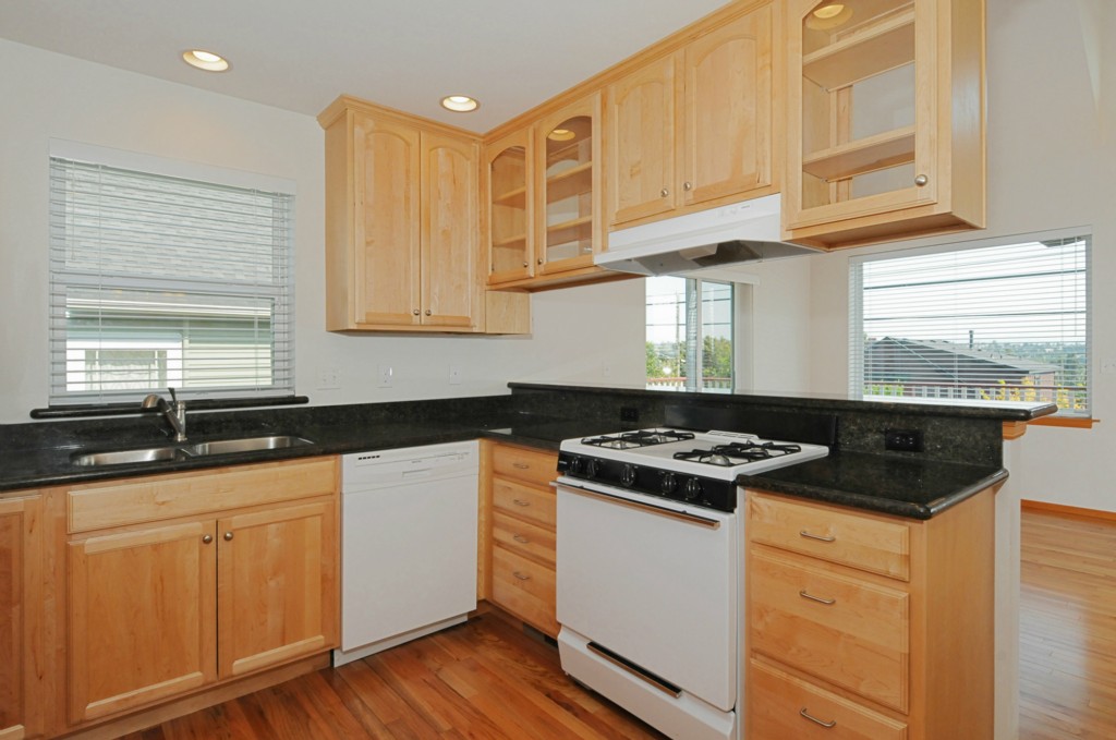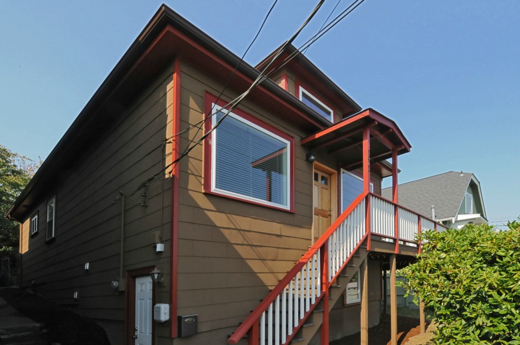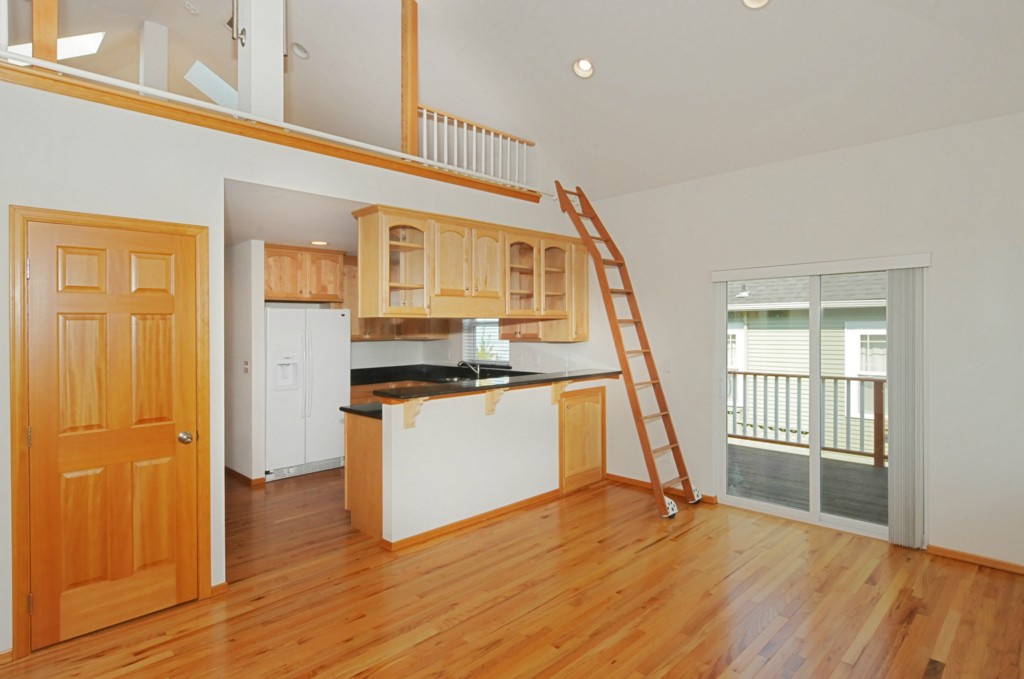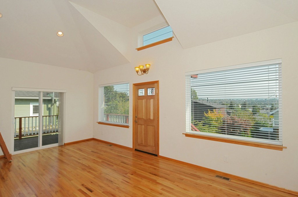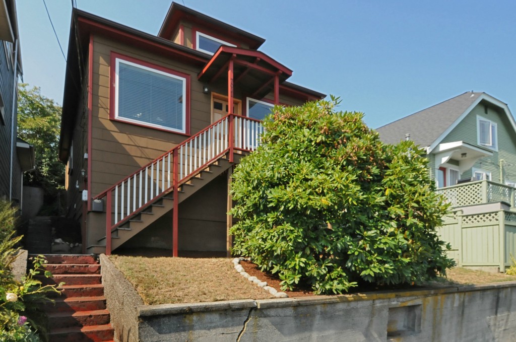 Renovated studs out, this light-filled View Craftsman w/huge wrap deck overlooks Green Lake/Cascades. Red oak hardwoods; tiling; solid wood doors; dbl windows. 1 BR on main + office; 2nd BR down. Loft for media/meditation/guest area etc. Big closets; ample storage. Open kitchen w/maple custom cabinetry, granite. Elegant BA. Green appliances; gas; A/C; new roof. Excellent neighborhood, quiet street...blocks from lake, restaurants, market, shops. EZ access Hwy 99/I-5, bus/RapidRide. Delightful!