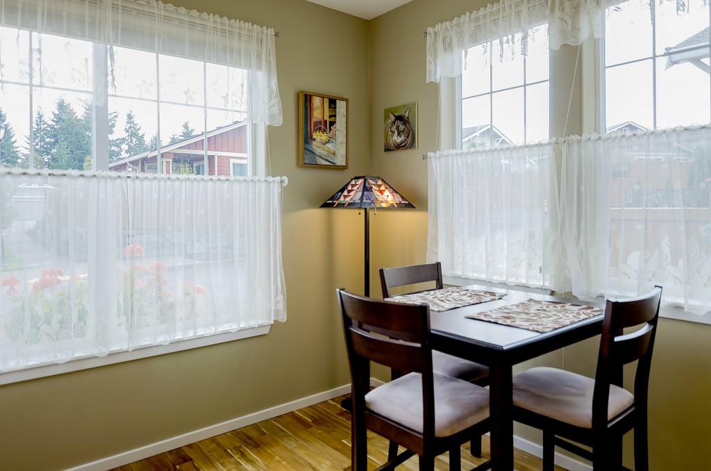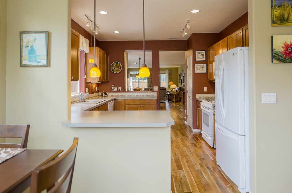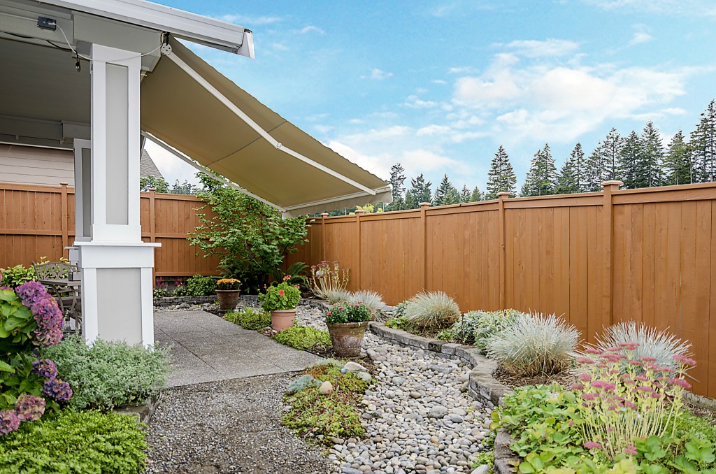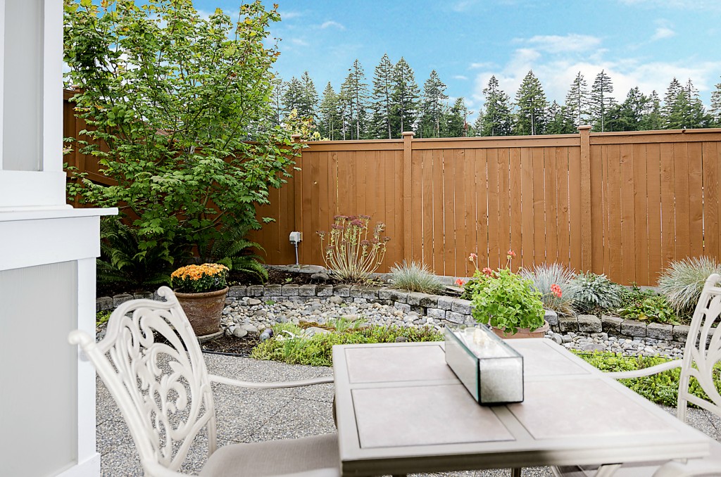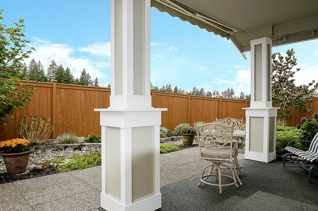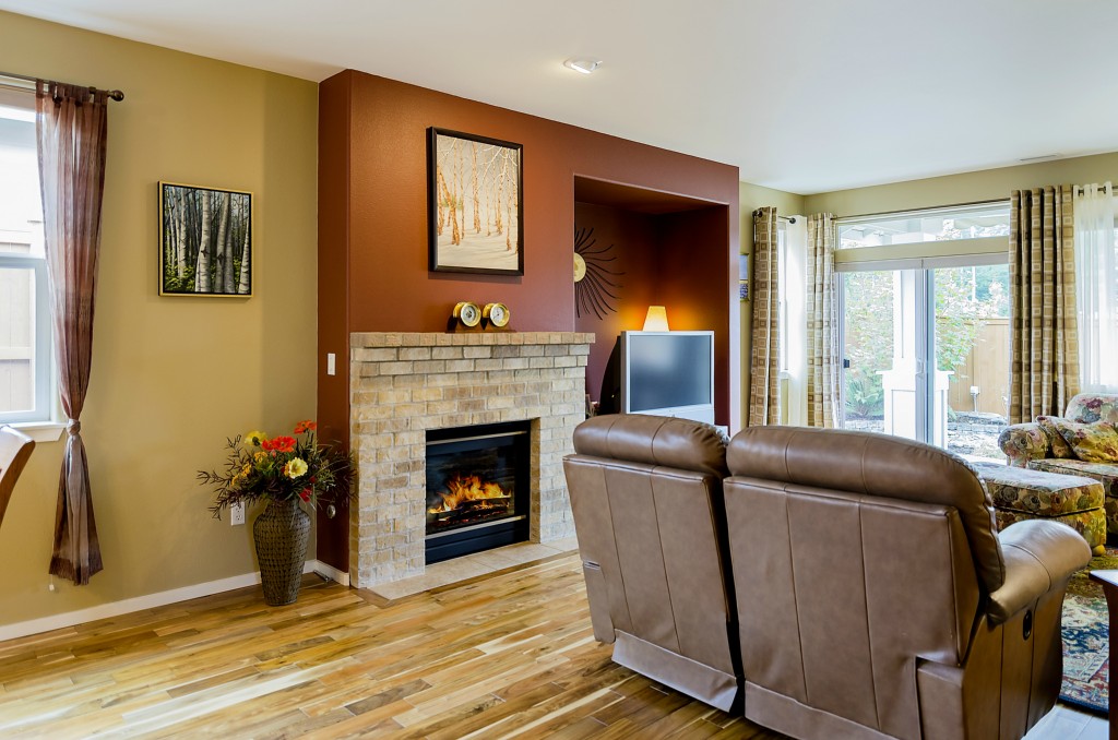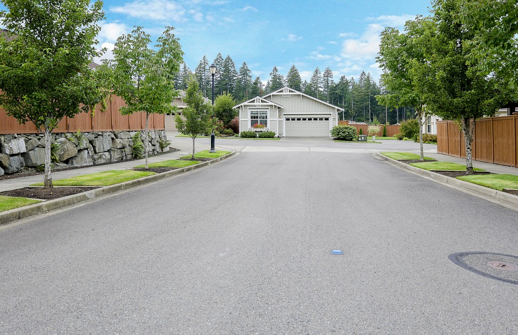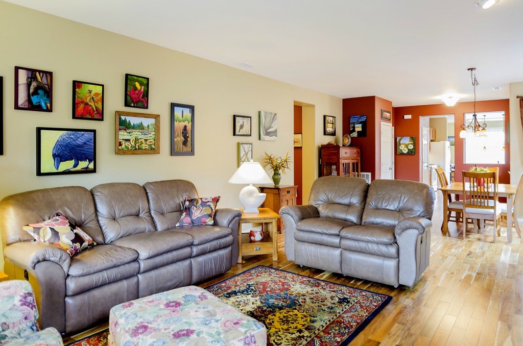 The Liberty floor plan w/ private side entry. 1534 sq.ft. home has 2 BR 1.75 baths. Well cared for home is light & bright.Open living area with gas FP / brick surround. New hickory flooring throughout main living areas. Large kitchen has shaker styled cabinetry & breakfast bar .All appliances stay.Large kitchen nook can be used as den or work area. Freshly painted exterior & beautiful easy care landscaping. Covered back porch & extended patio. Private street & very private home site. Won't last!