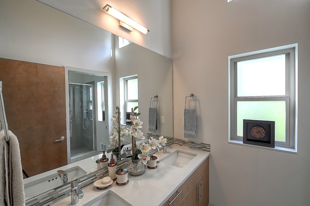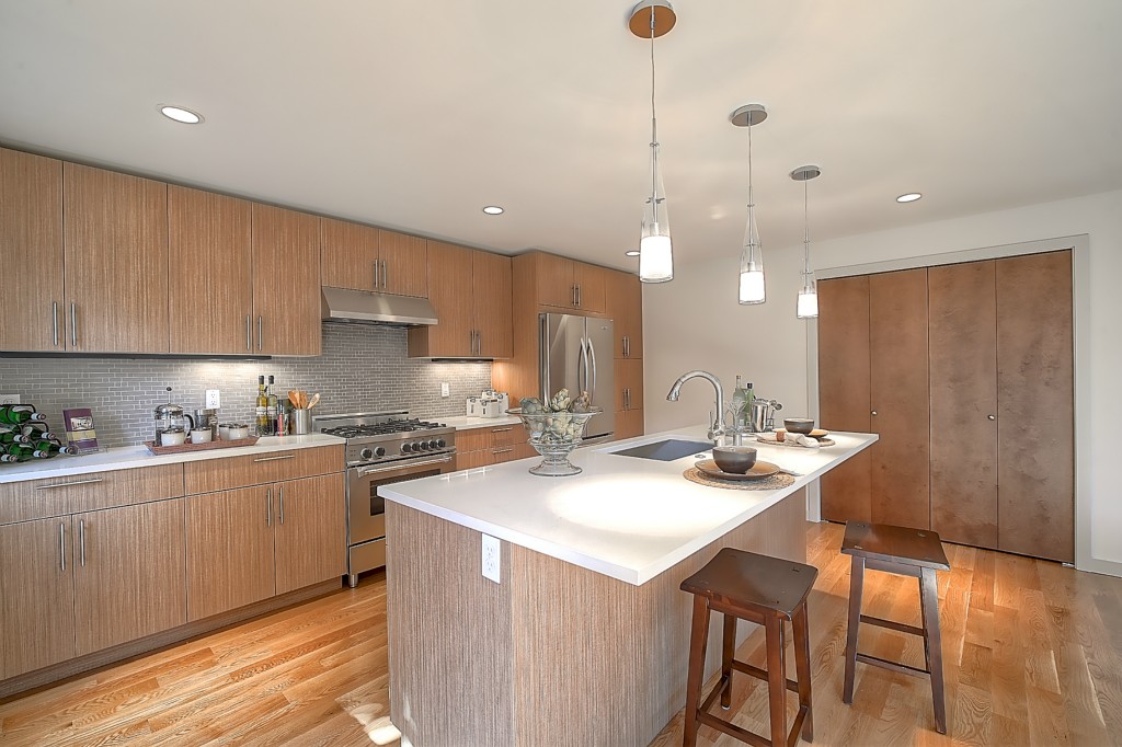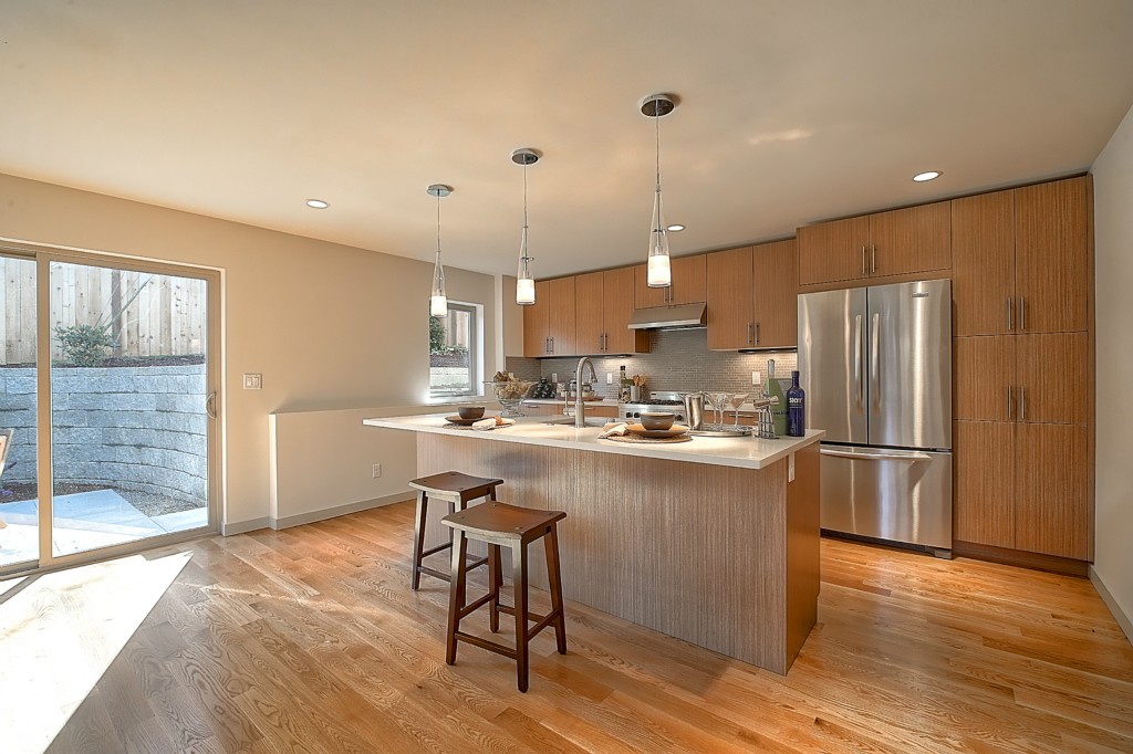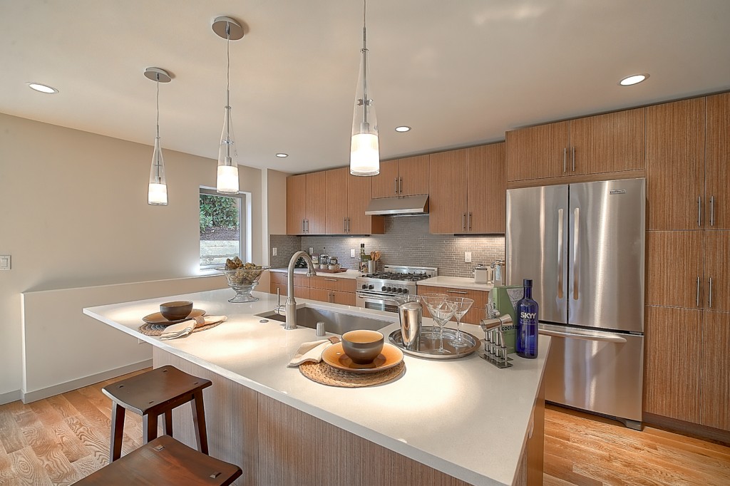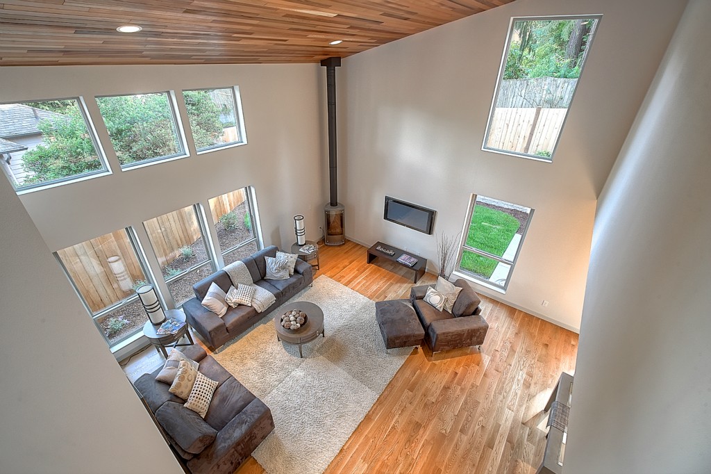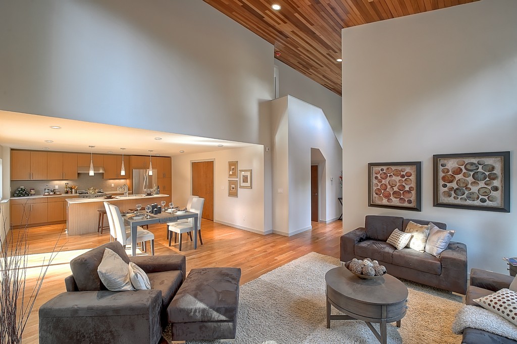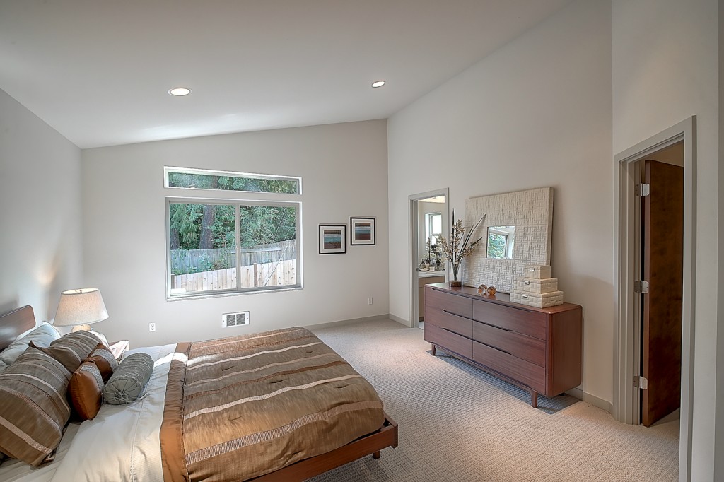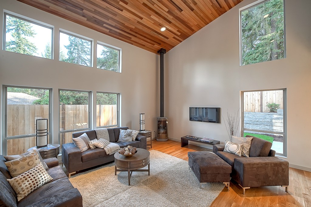 Stunning New NW Contemporary Home in Jackson Park. 3 bedrms, 2.5 baths. Built by premier builder Greatwood Homes - loaded with all the amenities for today's lifestyle. This home boasts open floor plan, painted mill-work, gas fireplace, soaring wood planked vaulted ceilings, pro kitchen w/SS appliances & slab counters, in floor heat on main level, fenced back yard w/patio, oak floors, large master suite, windows galore, attached garage. Minutes to Jackson Park Golf Course & Northgate amenities.