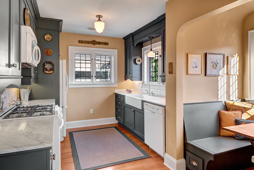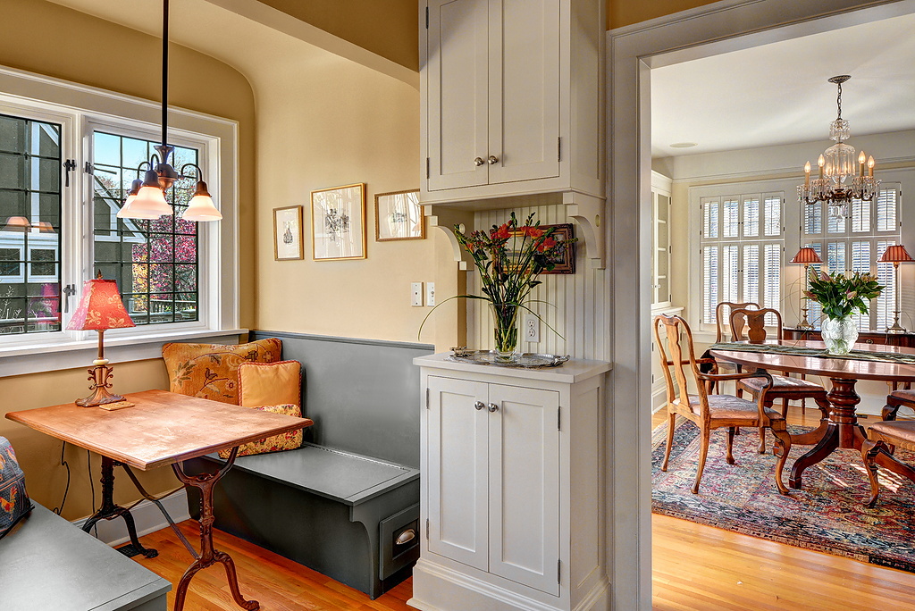 Stunningly beautiful, light-drenched residence exquisitely renovated in 2002 from studs out (J.A.S. Design Build) exudes refined taste. On a corner lot gated and fenced from leafy street it enjoys privacy in its professionally designed realm of fragrant, elegant formal gardens & patios.Double-paned leaded glass windows, French doors, superb hardwood floors, fine cabinetry,custom appointments, efficient & stylish kitchen with cheerful breakfast nook, elegant dayrooms, fully finished lower level.