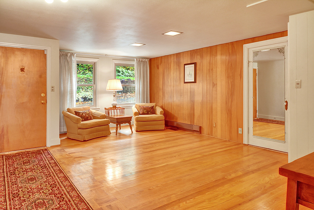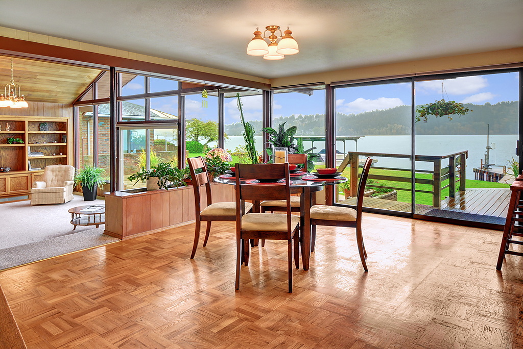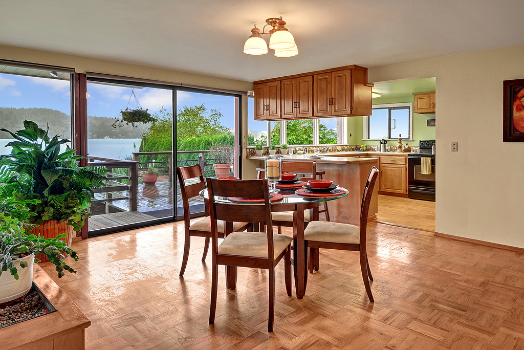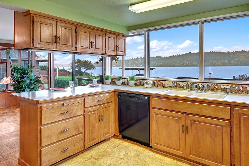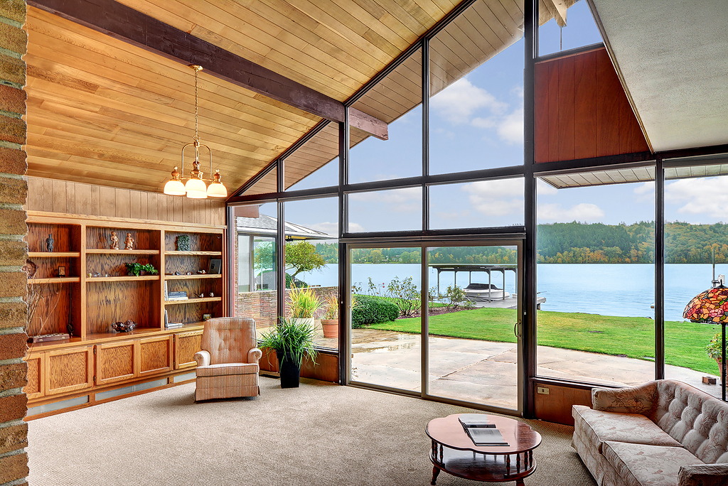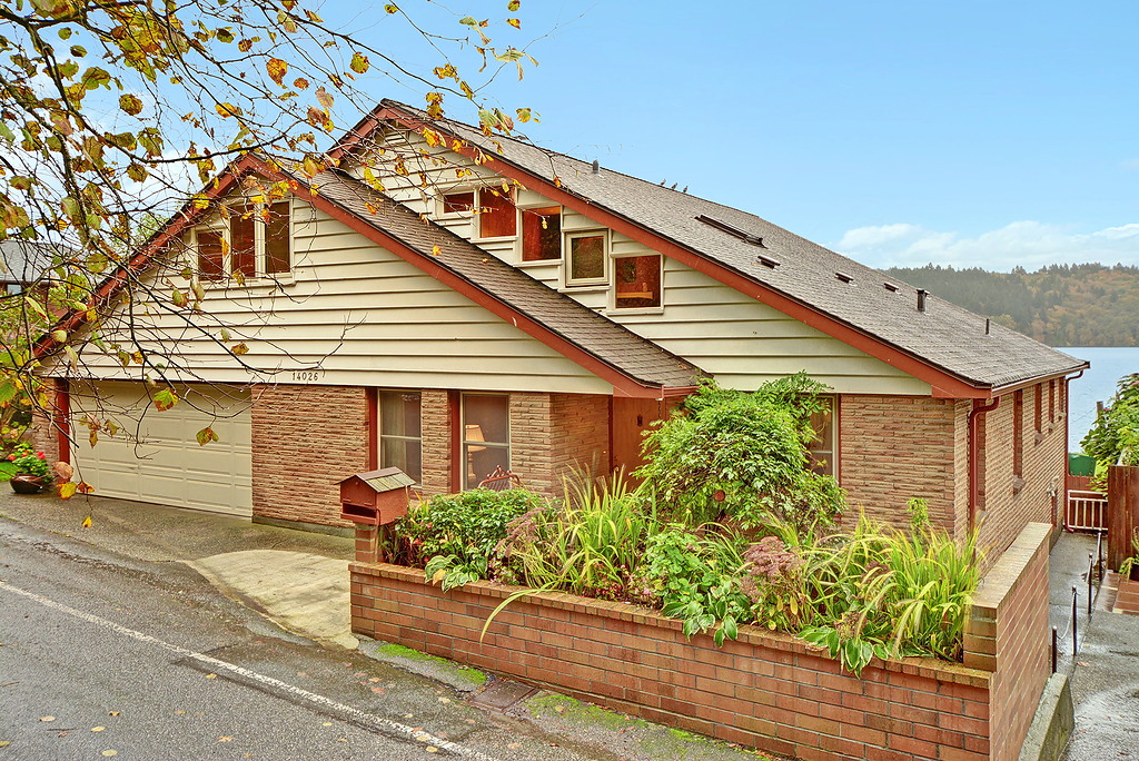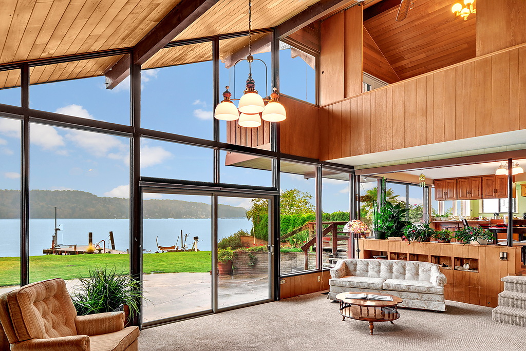 Enjoy panoramic views across the lake from Kenmore to Mt. Rainier at this prime +-60' low bank waterfront property. The 4 bdrm, 1.75 bth home was architect designed & remodeled in the late 1950's. Beautiful main floor flow w/kitchen, din rm, & sunken fam rm all oriented to outdoor entertaining & spectacular lake/mountain views. Vaulted ceilings, lofted master bdrm w/private view deck, & plenty of additional expansion possibilities. 2 car garage, dock and unfinished bsmt. Steps to B-G Trail!