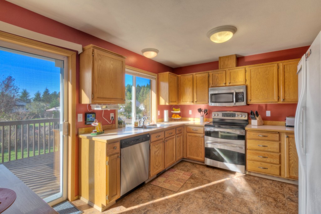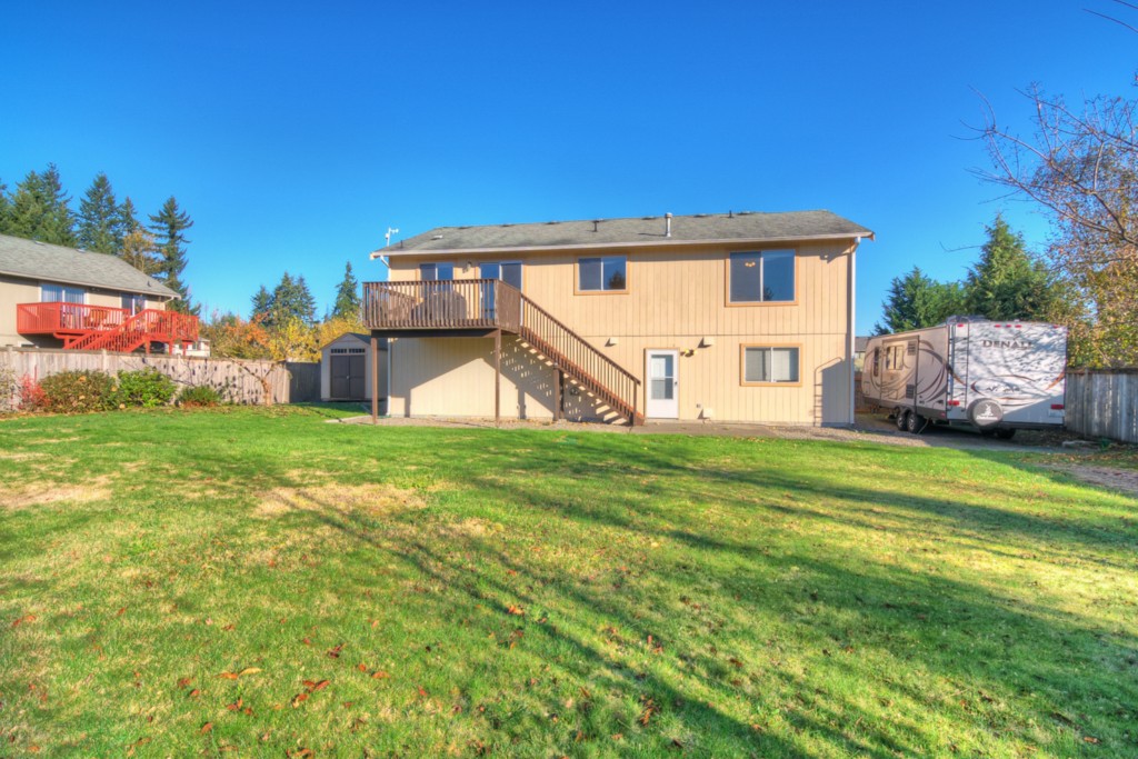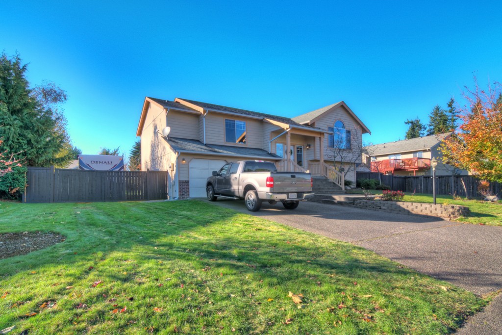 Not your traditional split level...step inside to a HUGE entryway with angled stairs & open rails! 4beds, 3 FULL baths, big family room down, upper living room w/ Fplace & dining area that currently has an 8 person table! Kitchen boasts SS appls, deck access plus all the appliances stay incl the washer/dryer! 2 car garage + separate shop w/ built-in workbench. Wired for generator, 220v for hottub, new H/W tank in 2009. Fenced RV parking & custom shed all on an 11,501sq ft lot. 5 min to Hwy 410.