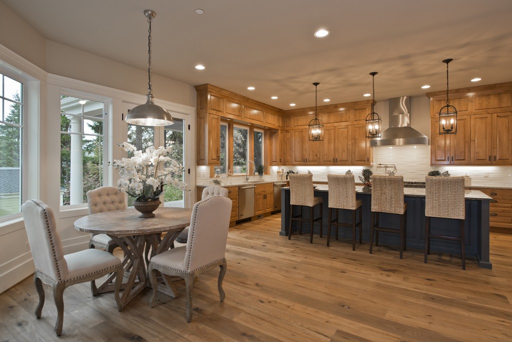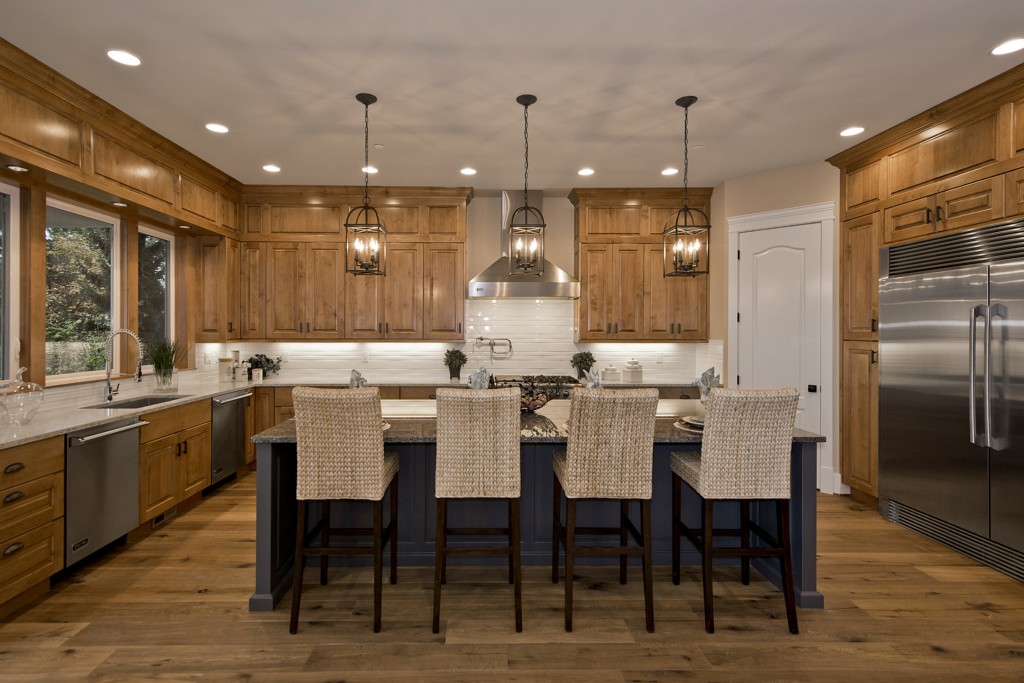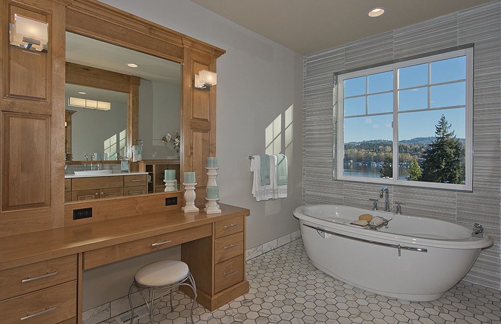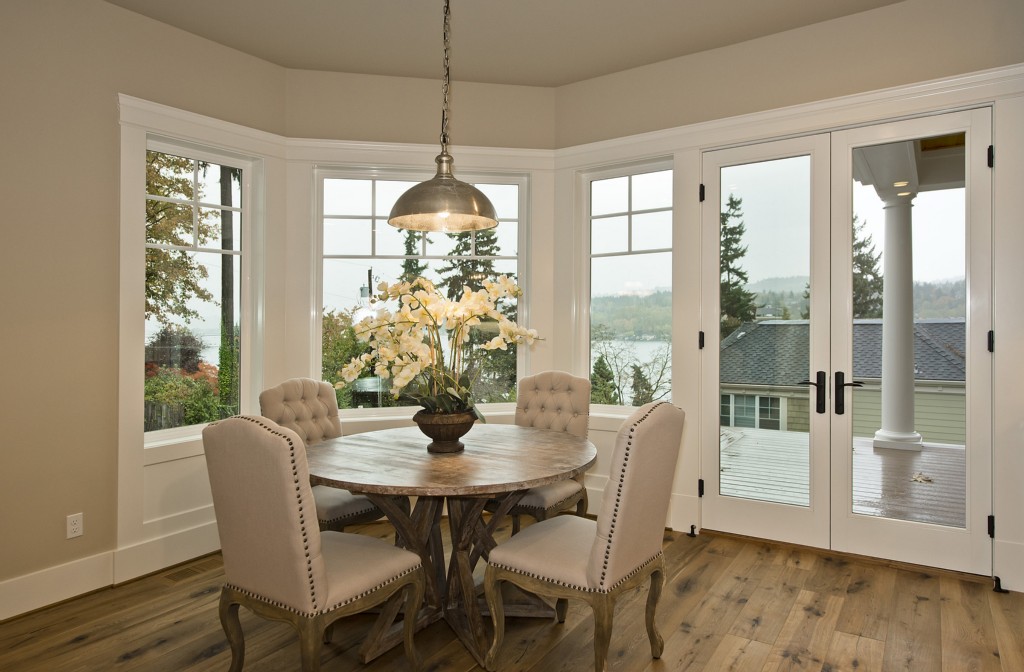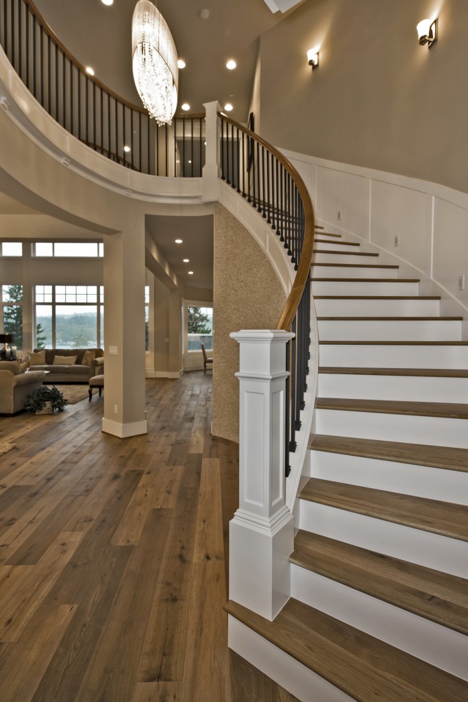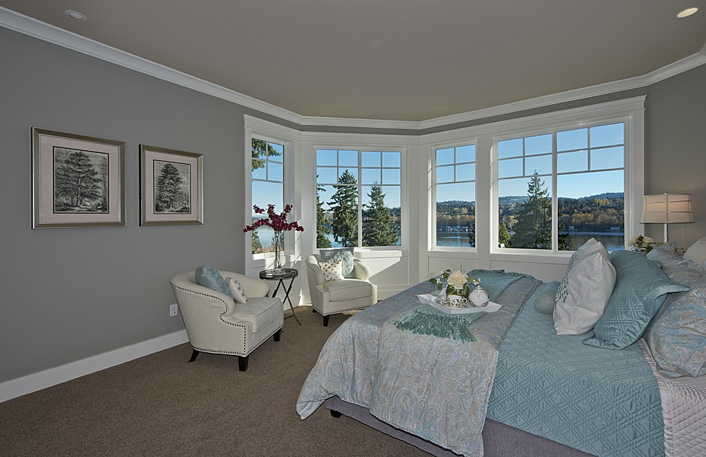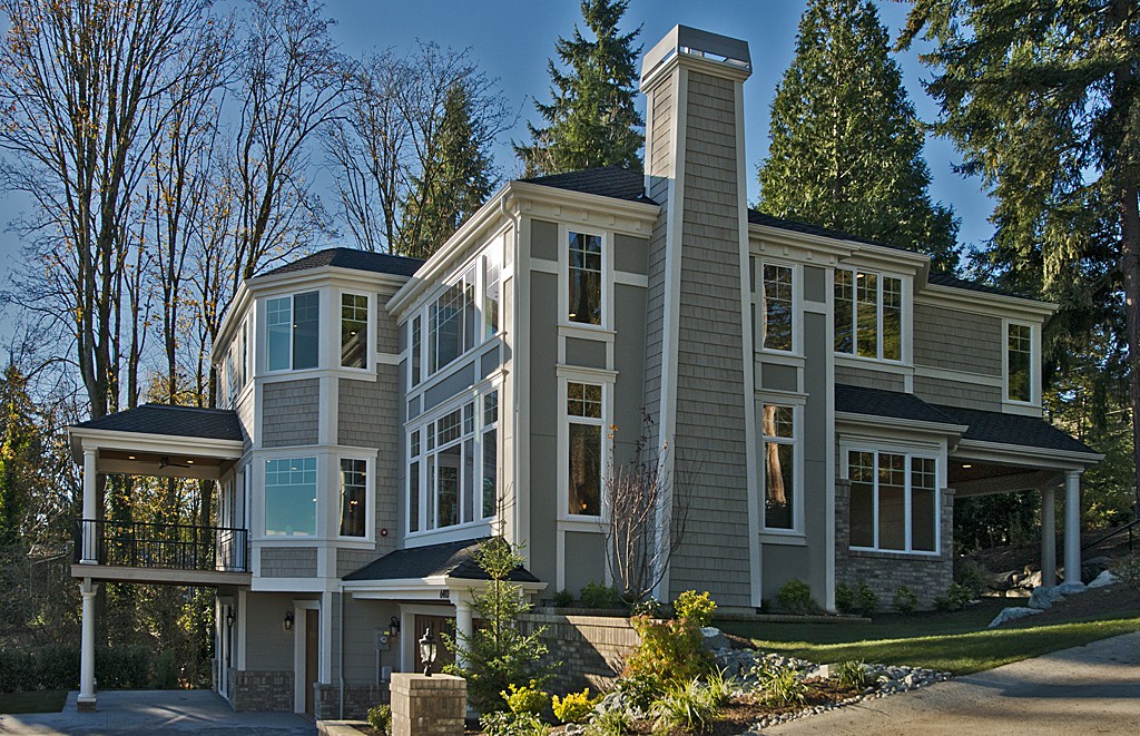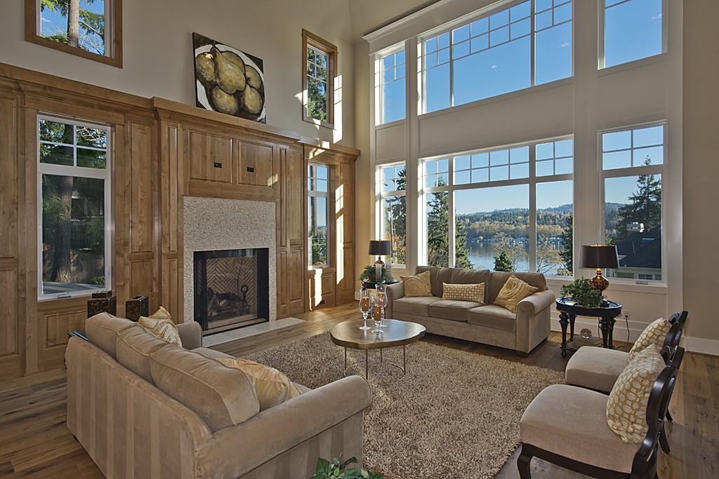 This grand residence blends traditional architectural elements on the exterior with the best of today's NW living inside. Elegance & craftsmanship abound with flowing lines of the curved staircases. Extensive white millwork details throughout. A 2 story wall of windows showcase the lake & mtn views. French doors entice guests to move freely between indoor & outdoor living areas. Professional grade chefs kitchen. European Oak hardwoods cover the main floor. Lower floor Media & B/R as guest suite.