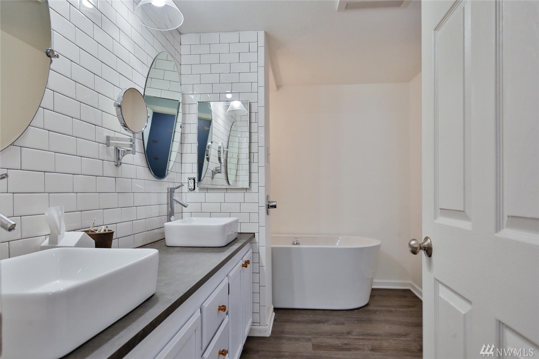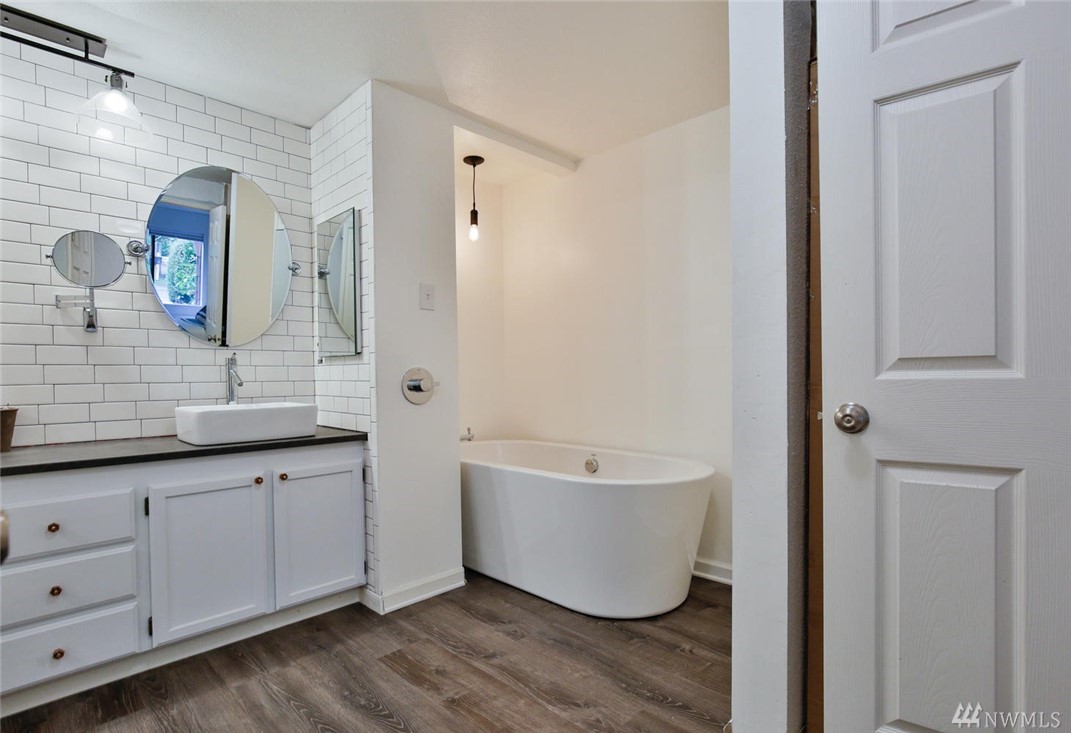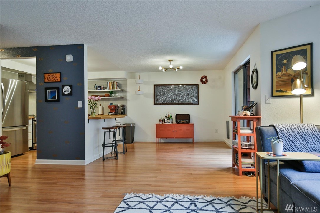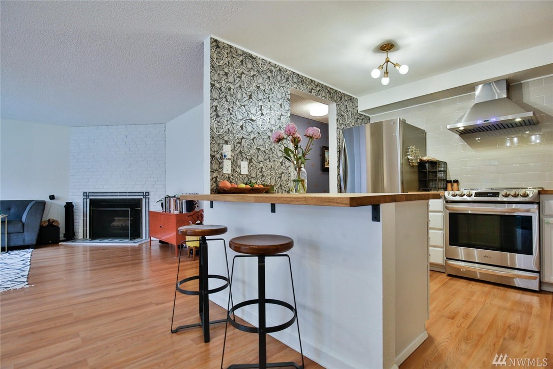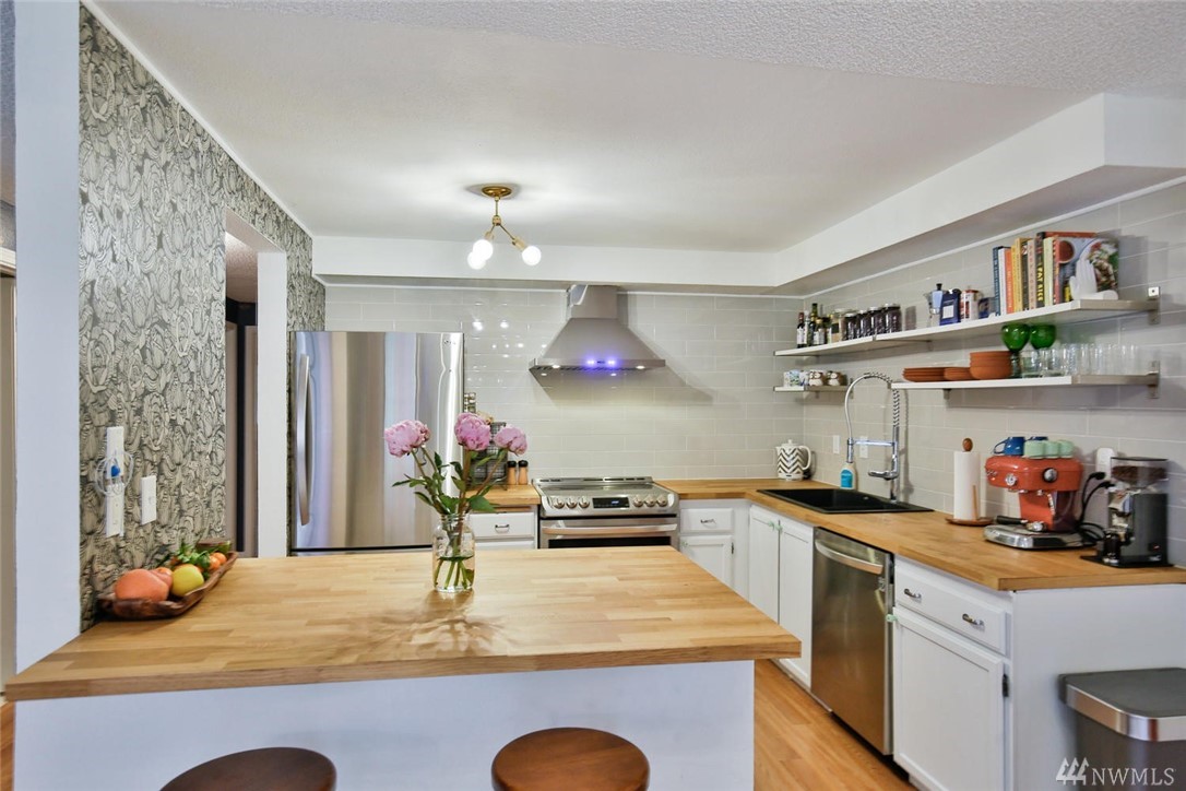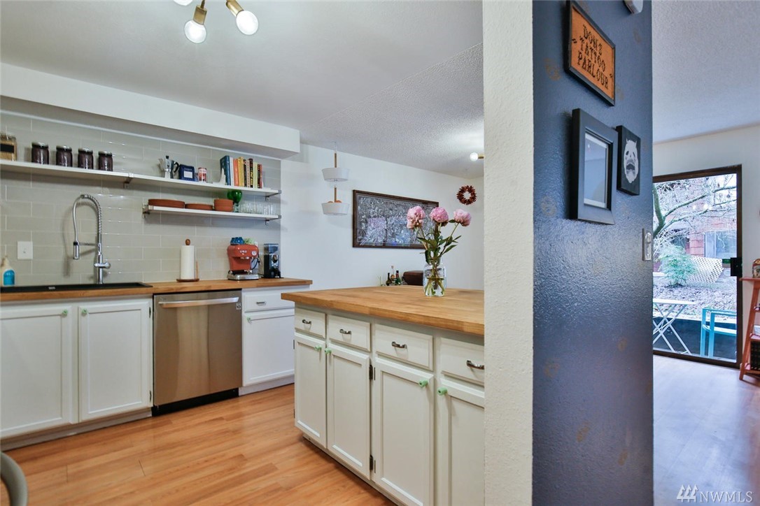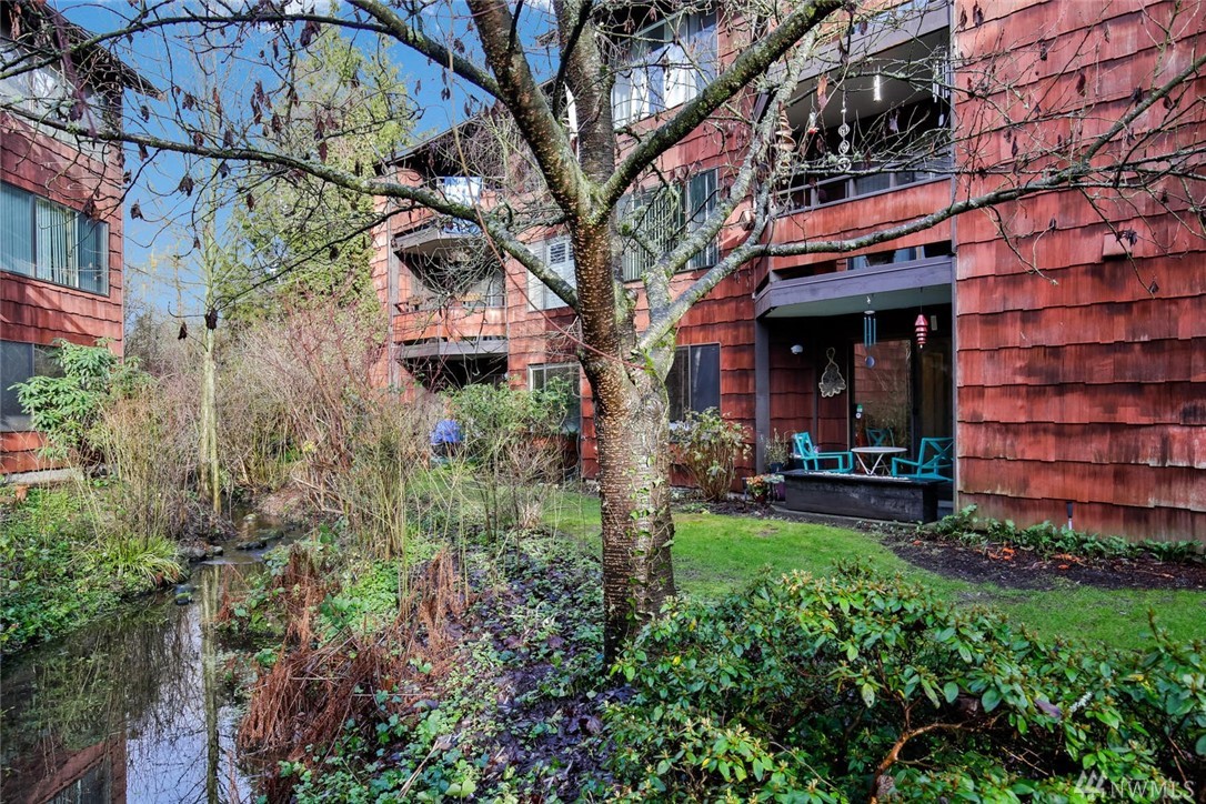 Welcome to idyllic Ravenna Woods, a serene urban oasis, walking distance to parks with easy access to the University District and downtown. This beautifully reinvisioned ground floor unit opens onto a patio next to tranquil Thornton Creek. Entirely updated with new high-end LG kitchen appliances, custom blinds, lighting, flooring, countertops, art-deco and brick tiled fireplace, key-less entry, large soaker tub, Bosch W/D, electrical panel, H/W heater and more. Garage with second storage space.