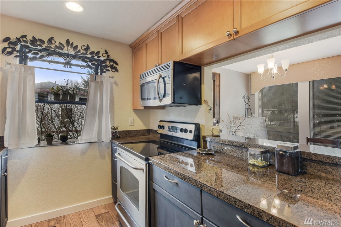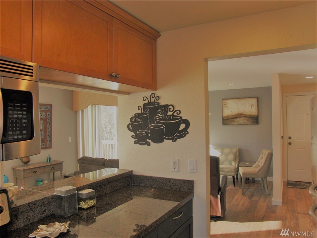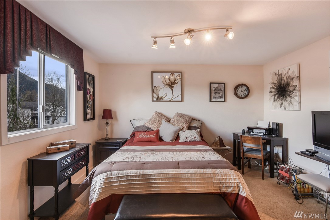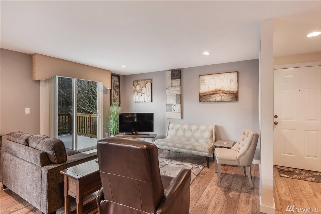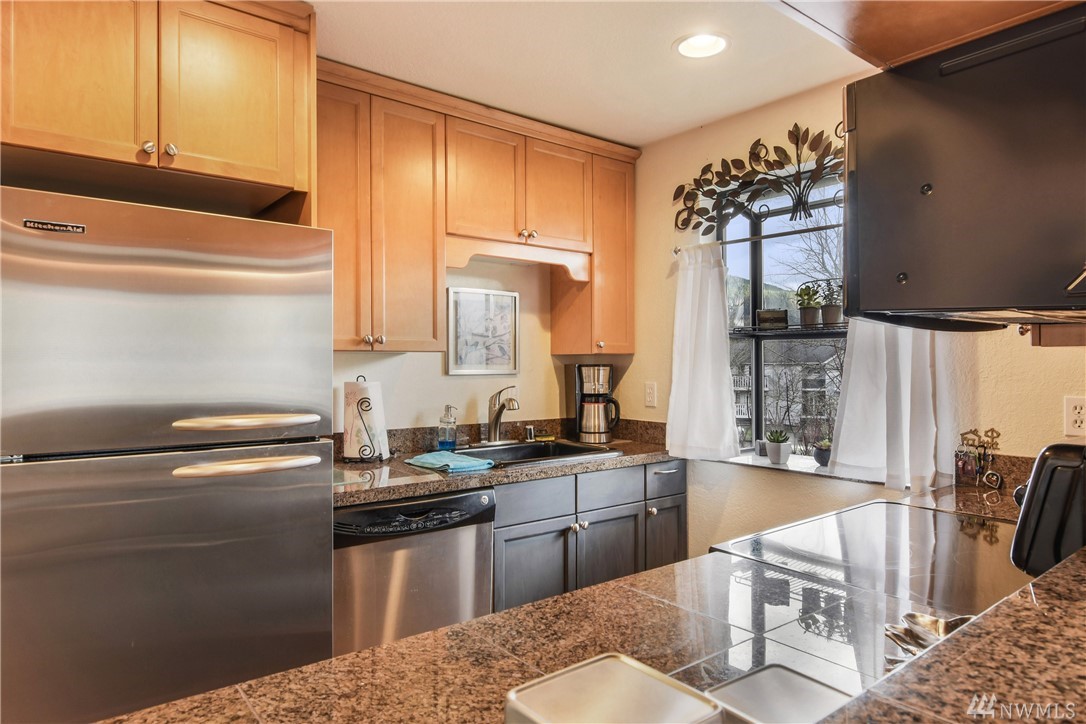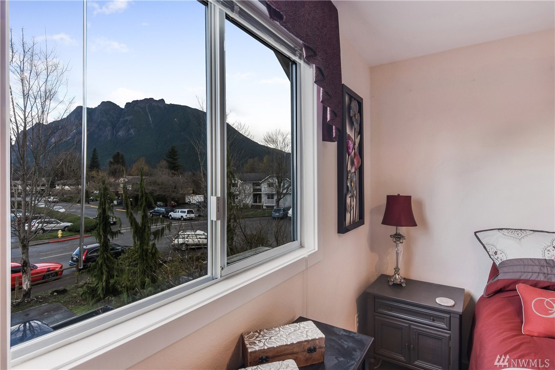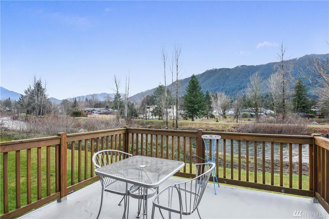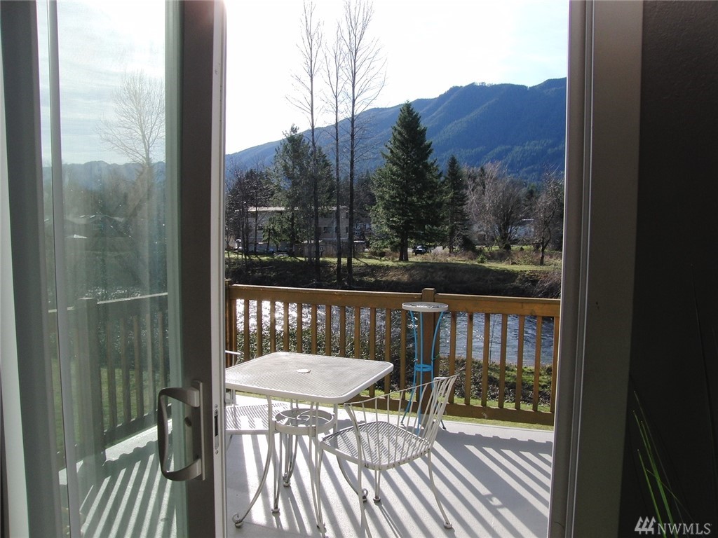 Fabulous fully furnished condo on the River move in ready w/ 360° mountain views. Perfect vacation rental opportunity. Snowbird owners ready to let go of this pristinely kept 2 bedrooms w/ continental bath. Granite tile counters, cherry cabinets, garden view window, new rustic oak laminate floors, solid private deck w/river & Mtn views. Easy access to restaurants, premium outlet mall, Safeway mall, Snoqualmie Falls & Casino. Plus, innumerable recreational activities. 2 reserved parking spots.