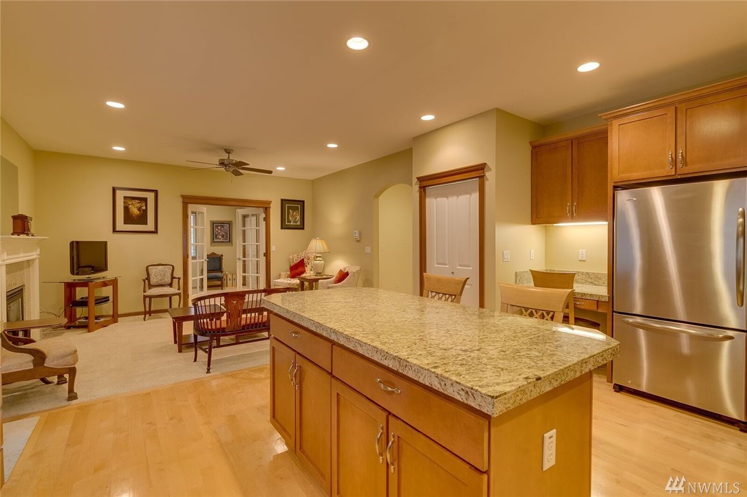 Well maintained attached rambler located in a quiet setting on a private lane next to a greenbelt. Built with Impressive Quality to provide easy living with spacious luxury. Gourmet kitchen in a great room layout, cherry cabinets, granite tile countertops, premium hardwood floors, GE stainless appliances and gas range. Large Master Suite offers radiant heated floors in bath and skylight. Inter-com system, high ceilings & disabled access, almost no steps! 2 car garage and private fenced backyard.