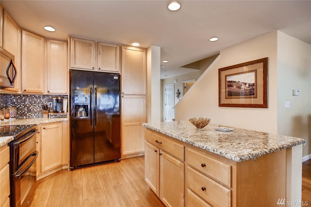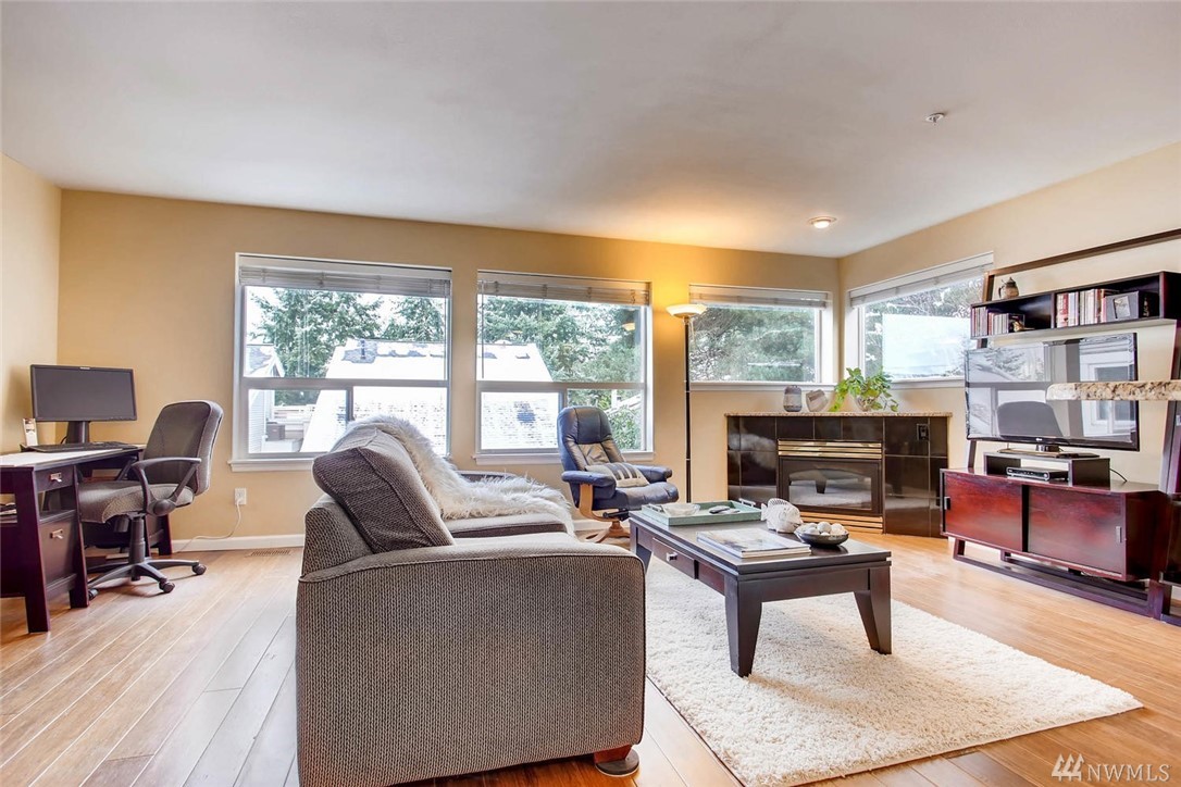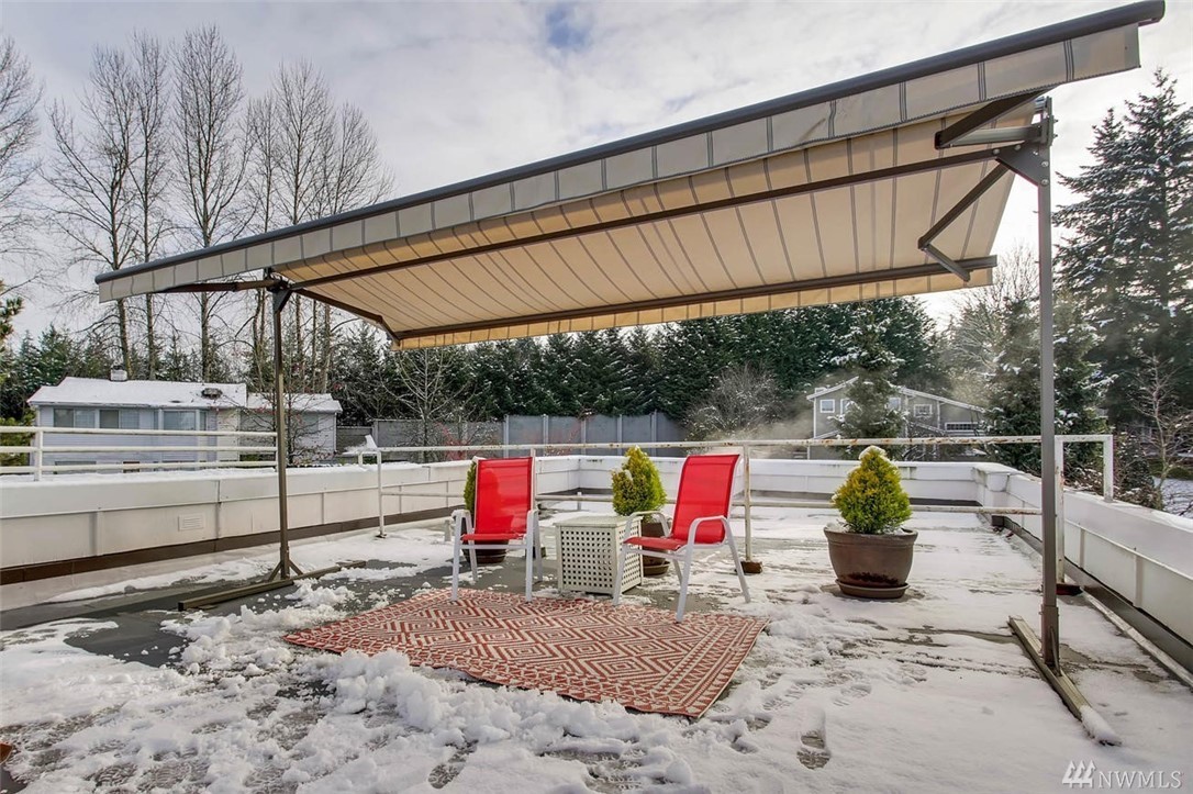 Spacious end unit, remodeled Kirkland townhome. Main level features great room with remodeled kitchen, living and dining area and fireplace. Upstairs Master suite featuring view deck, a remodeled 5 piece bath and a large walk-in closet. Also, a 2nd bedroom and an open office den. Rooftop deck w/ stunning city, mountain and Lake views and large awning is perfect for entertaining. 3 car garage w/work space and lots storage. Enjoy downtown Kirkland restaurants/shops. Easy access to 405 & 520.