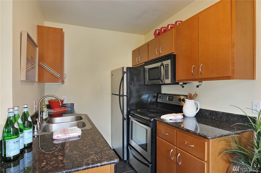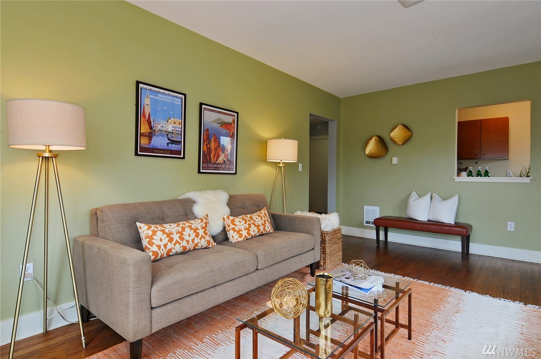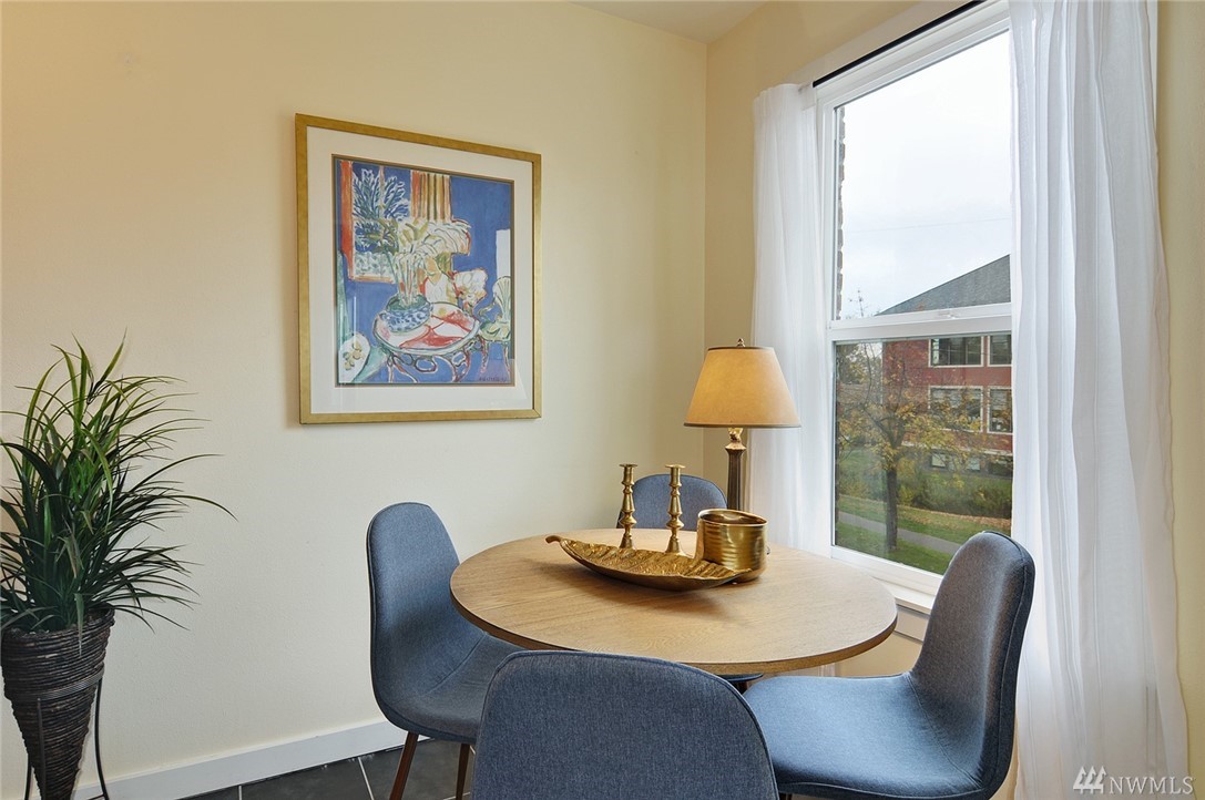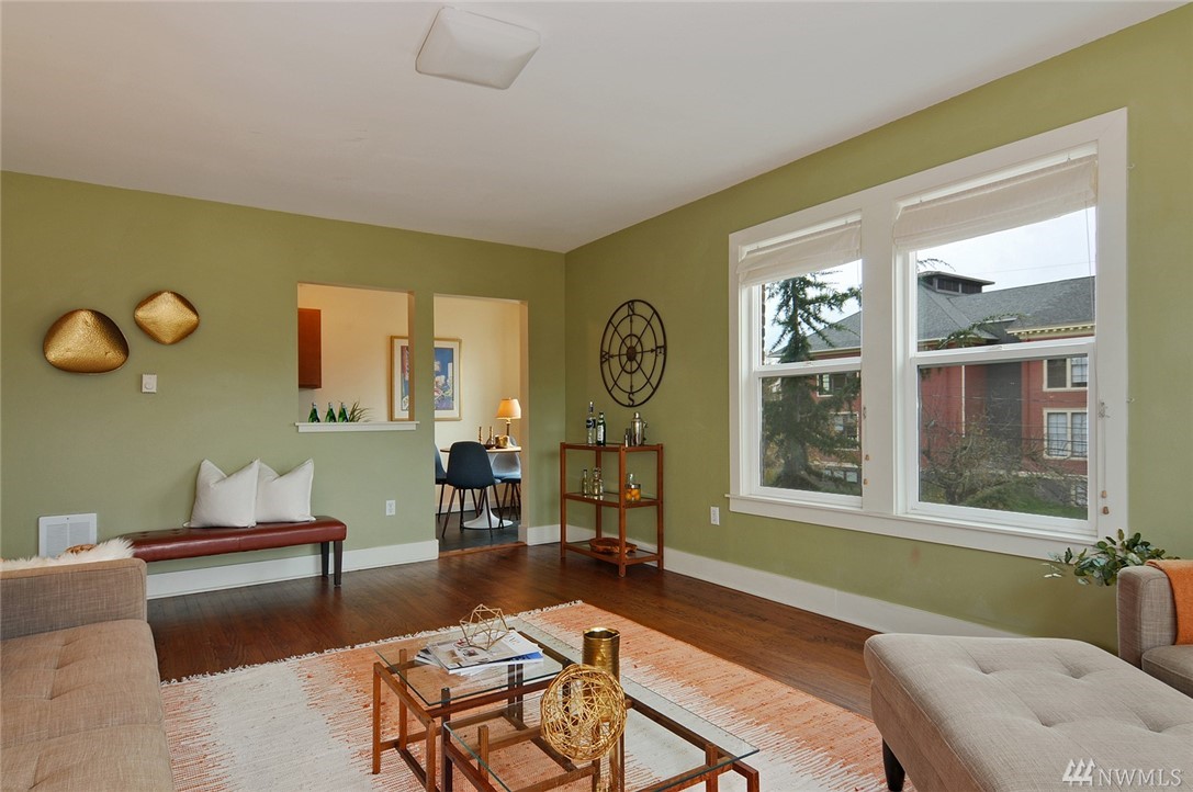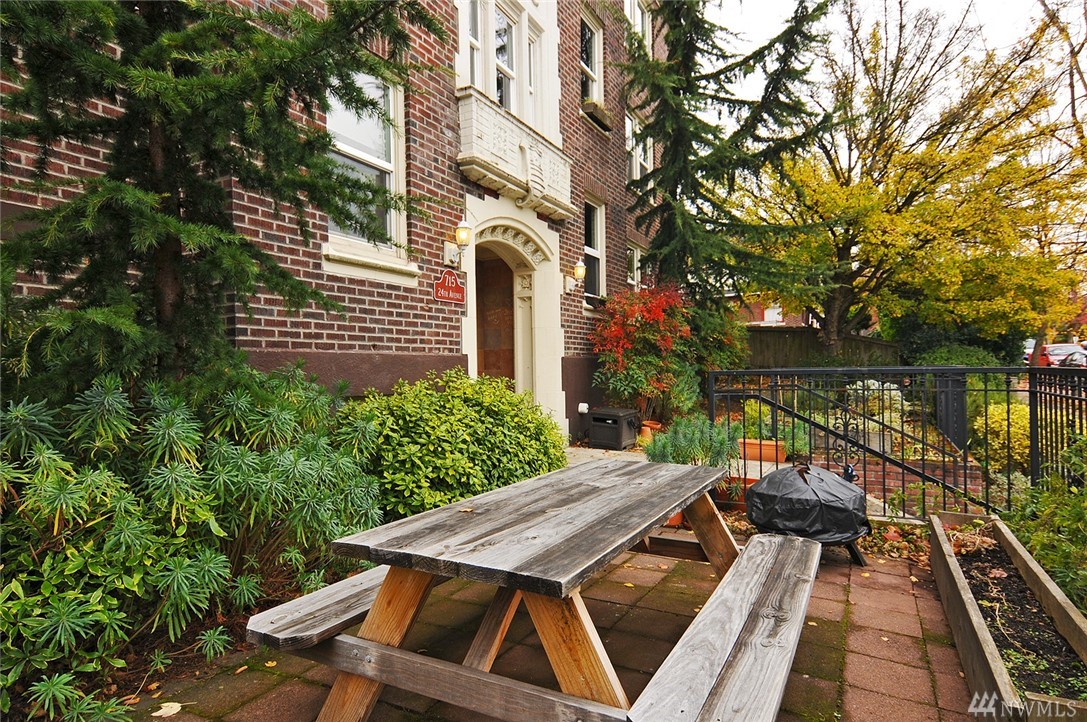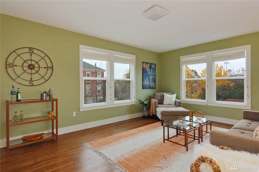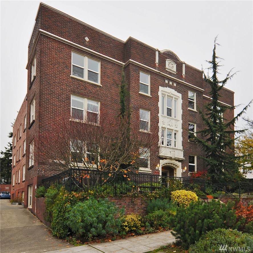 Updated & beautiful Garfield 2nd fl corner condo! Lite & bright. Lovely hdwd flrs, updated kit. & bath & in-unit wshr/dr. Designated Parking! Period details retained w/modern nod to today's lifestyle. Lives & feels large. High ceilings. Walk-in closet in mstr bdrm is large enough for office as well! Pet-friendly bldg! Ez bus (3&4) to dt & Cap Hill. Ample secure, storage unit & designated bike space. Very friendly & close condo community. Well run HOA, good reserves.Come see..gorgeous!