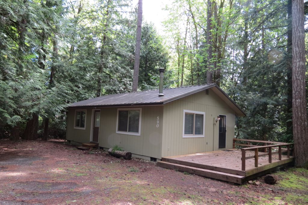 Cute & cozy cabin in the woods at Hartstene Pointe's friendly, gated community on a single driveway. Like new inside w/new laminate floors, paint and blinds. Forced air furnace, wood stove and large deck. Single driveway. Makes a perfect weekend, vacation home walking distance to North Beach recreation area or pool/clubhouse. Pointe amenities include: pool, clubhouse, tennis/sport courts/fitness center, marina, boat launch, picnic/BBQ areas, miles of walking trails and saltwater beaches.