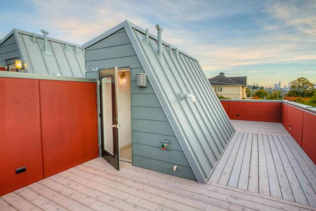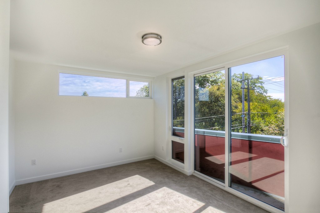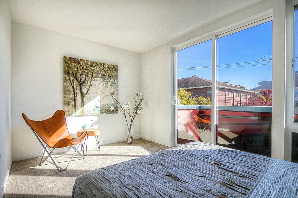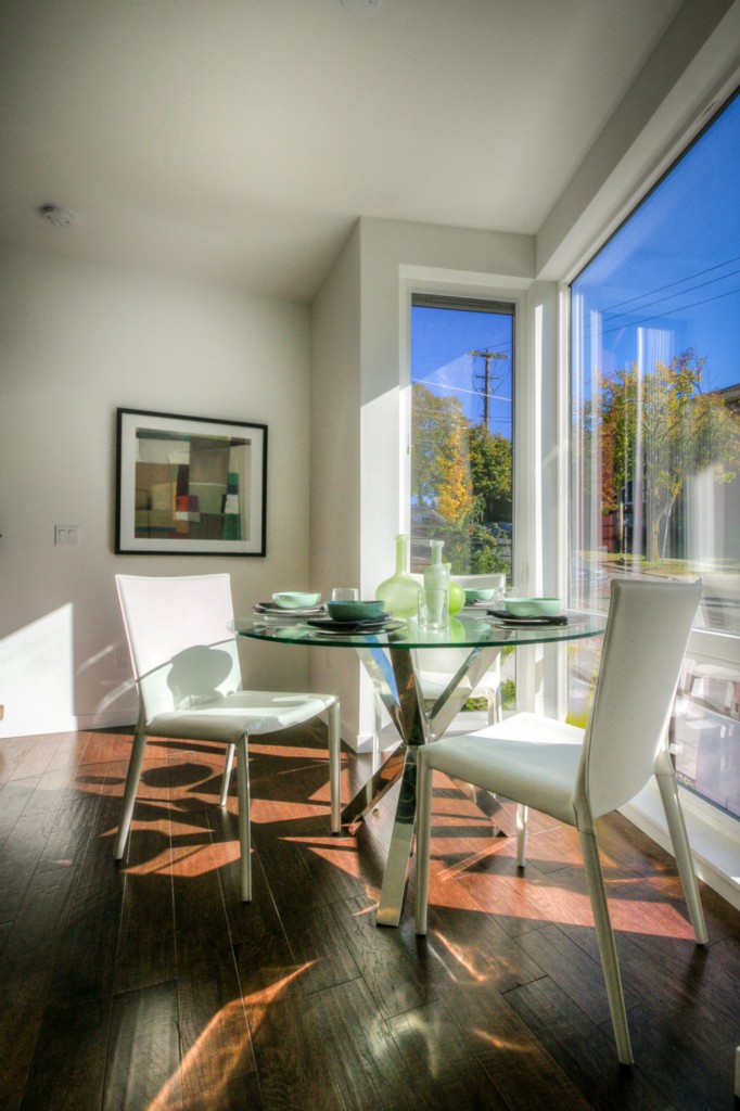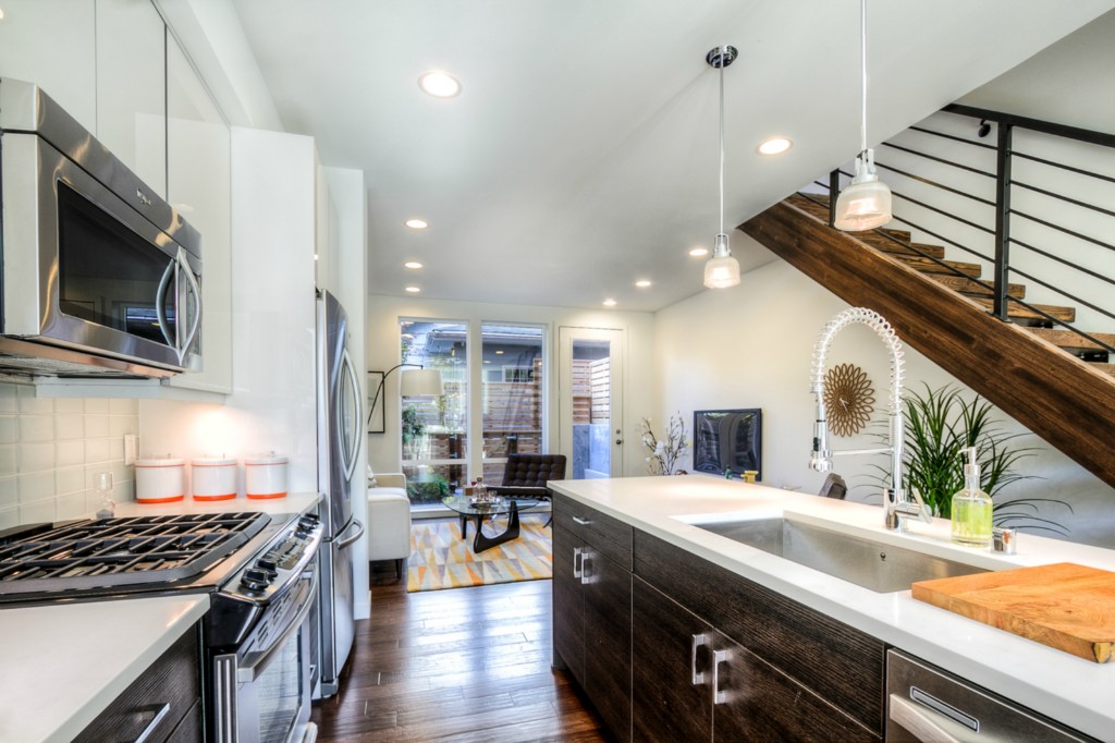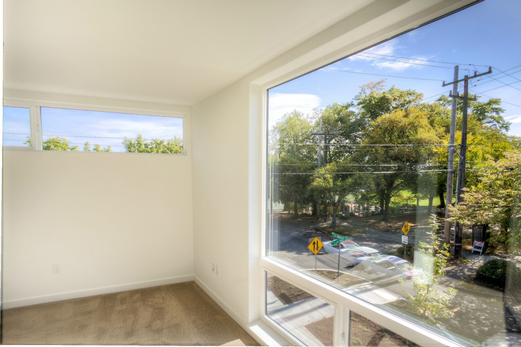 Completed End unit! Last Home-Quick Close! Modern design in a park-like setting, hugged by beautiful tree lined streets. Living on main with 3 upper BR, all with incredible natural light. Relax and enjoy the view from very private rooftop deck. 3cm thick slab quartz counters, gas range, acrylic uppers, stained floating stairs, hardwood floors, radiant in-floor heat, tankless hot water, double wall construction, private gated = patios, parking plus new street parking . Washer /Dryer! No dues!
