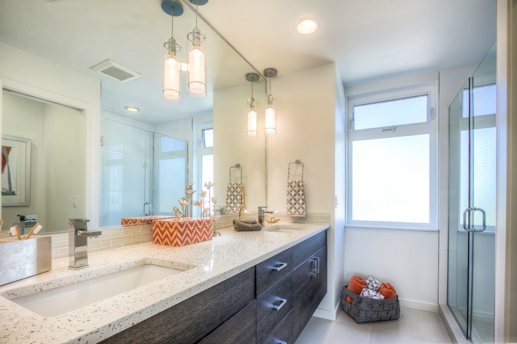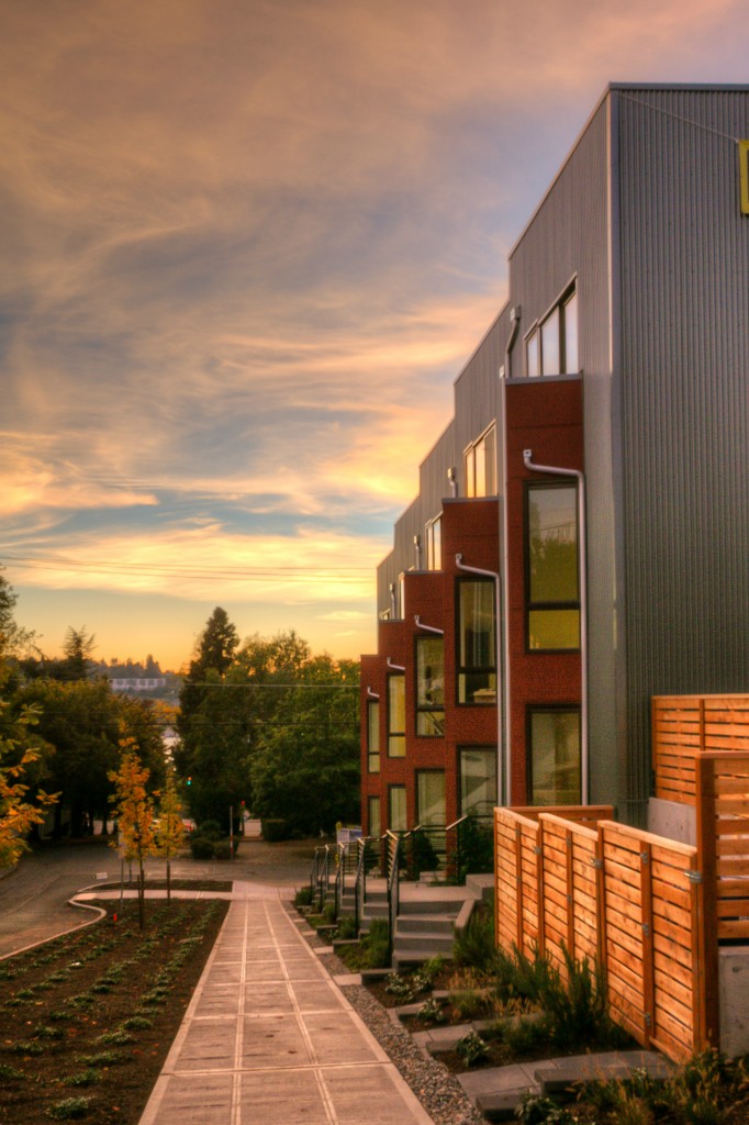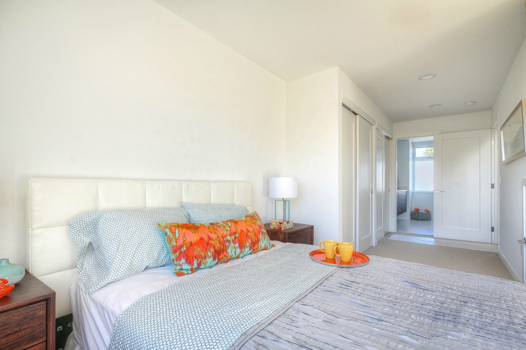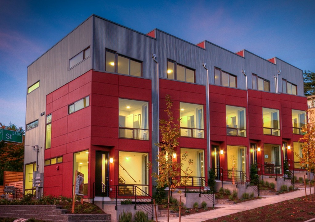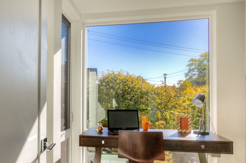 Completed End unit! Last Home-Quick Close! Modern design in a park-like setting, hugged by beautiful tree lined streets. Living on main with 3 upper BR, all with incredible natural light. Relax and enjoy the view from very private rooftop deck. 3cm thick slab quartz counters, gas range, acrylic uppers, stained floating stairs, hardwood floors, radiant in-floor heat, tankless hot water, double wall construction, private gated = patios, parking plus new street parking . Washer /Dryer! No dues!
