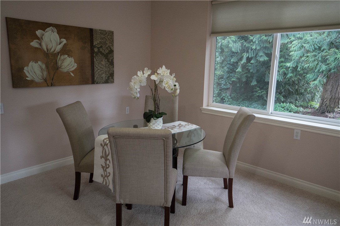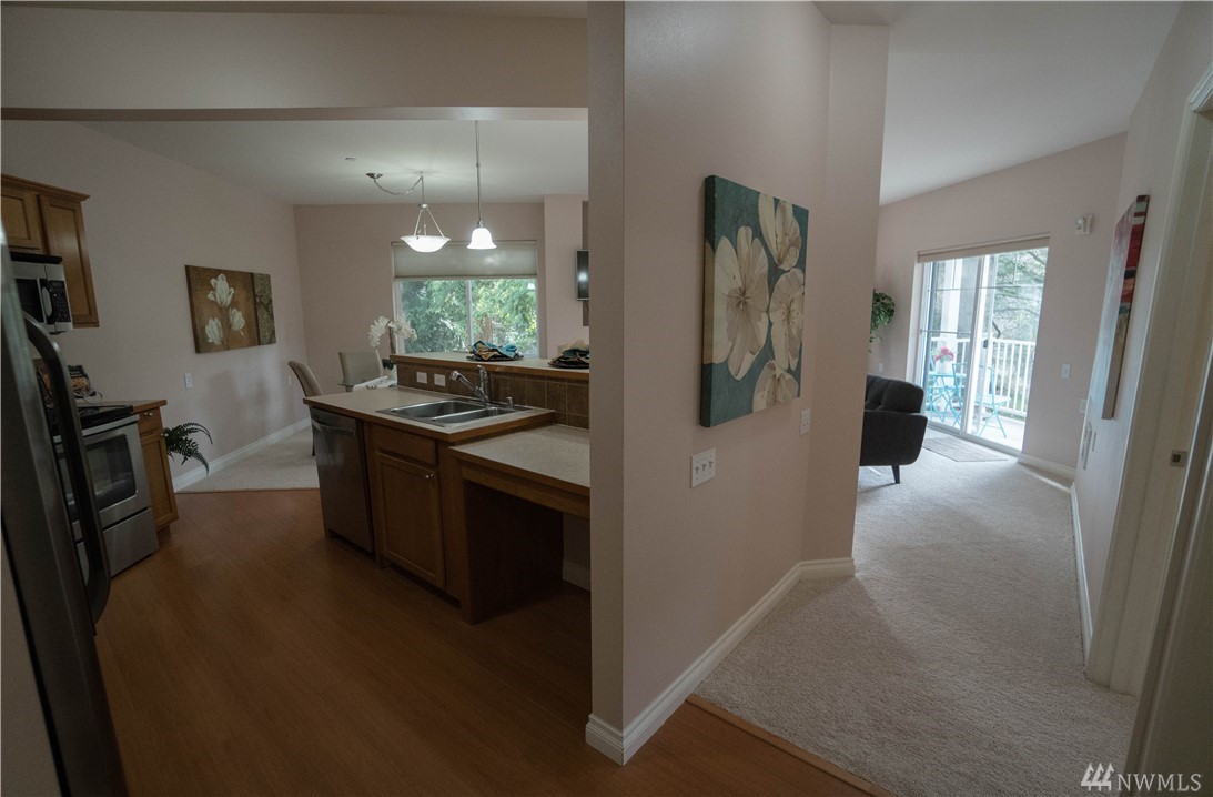 SW corner home in excellent, move-in condition! Brand new carpeting. 9-foot ceilings. 2 bedrooms, 1 3/4 baths w/handicap style roll-in shower. Lovely kitchen including breakfast bar, stools remain (not part of staging). All appliances remain & are 3 years old. (microwave is original) CA closets in master & entry. Quiet ceiling fan in master. Nice west facing sun deck. Amazing walkable location to Cinnabar, groceries, coffee, etc w/bus in front. Exterior power washed & painted in summer of 2017.