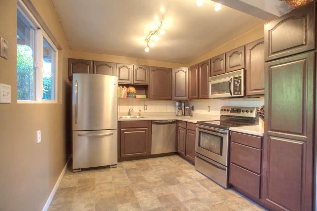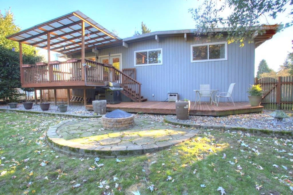Great location for this beautiful home! Updated kitchen including cabinets, counters, flooring, french doors, trim & s/s appliances. Newer forced air gas heat, windows, roof, 6 panel doors, skylight, electrical panel & lighting. Home has hardwood flrs & wood stove FP w/ blower for those chilly nights & nice laundry room with space for 2nd bath. Large level lot with fully fenced back yard, shed, fire pit & 2 big decks, 1 covered deck off kitchen for year round use. Located close to most anywhere.