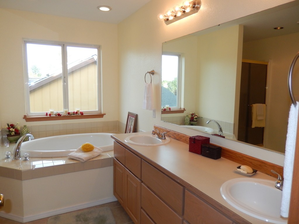 The charming front porch welcomes visitors to this lovely home in Park Place. Step inside and find hardwood, tile, new carpeting and fresh paint throughout. Beautiful new corian counter tops, stainless steel sink and garden window looking out to a fully fenced yard with roses and apple trees. Skylights and tons of windows, a great floor plan with plenty of flexible space, 3 bedrooms, large master with walk in closet and 5 piece bath. A wonderful home close to schools, parks, amenities and JBLM.