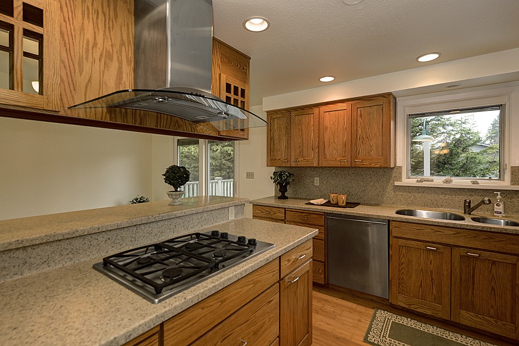 A wonderful updated home! New kitchen w/beautiful cabinets, Corian counters & stainless appliances. Formal dining rm w/access to new large Trex deck to enjoy sunny evenings. Master bed w/private bath. Gorgeous bamboo floors on main level, new carpet down & freshly painted. Family room in lower level w/fireplace, 4th bed/den & 3/4 bath. Large corner lot offers space to play & extra parking. Across from lagoon! Easy access to Quartermaster Harbor. Only 15 min to Seattle Ferry & Vashon Golf Course.
