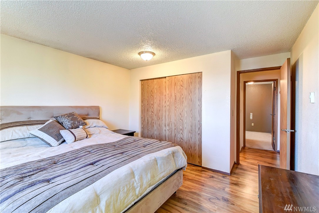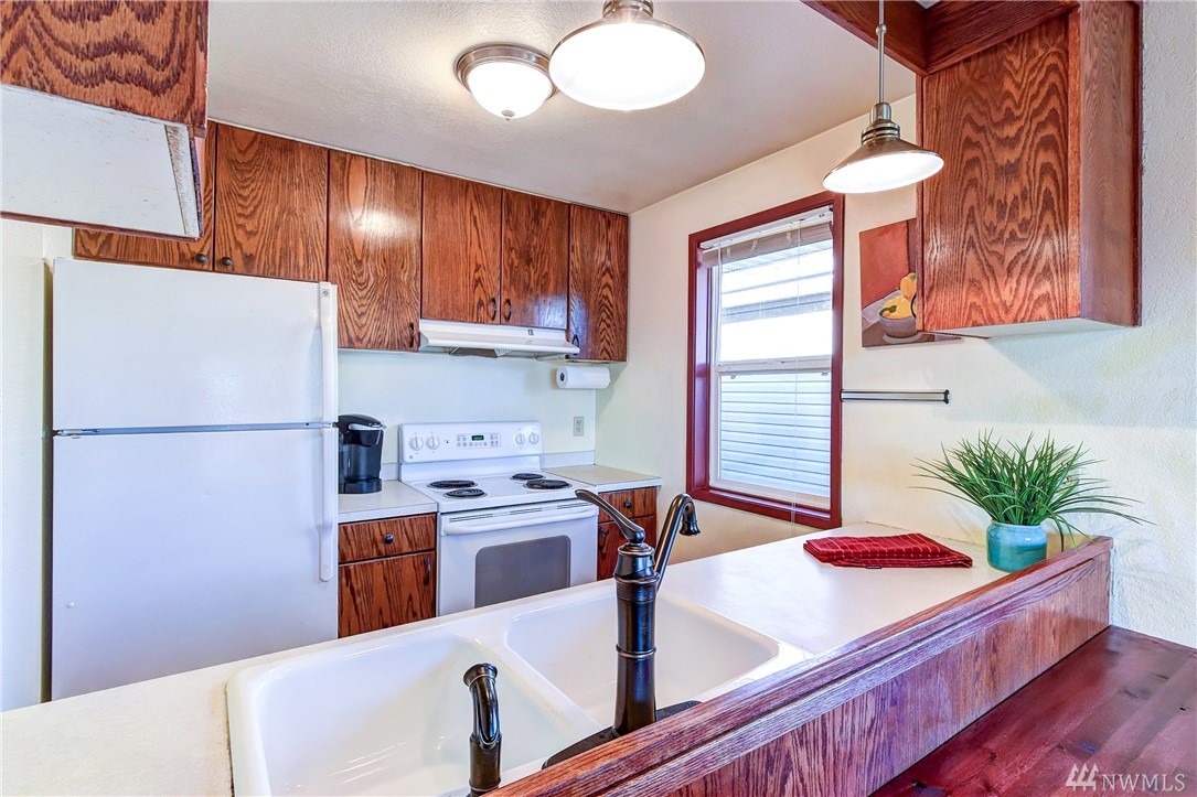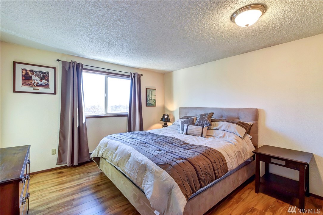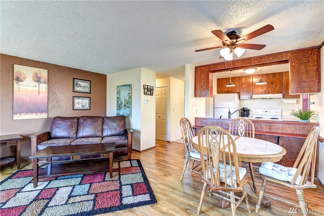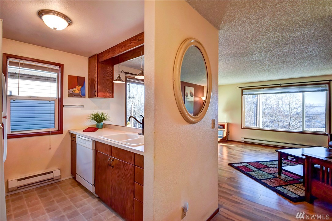 Bright Top Floor End unit in small 12 unit community with territorial views of the Cascade Mountains. Beautiful laminate floors!! Vinyl double pane windows, newer roof and vinyl siding. Unbeatable location near Everett's new upcoming waterfront redevelopment. Easy access to Everett Community College, Hospital, parks, I-5, bus lines and all amenities including a wonderful Neighborhood vegetable and fruit stand. Minutes away from Legion Memorial Golf Course and Everett Naval Station!