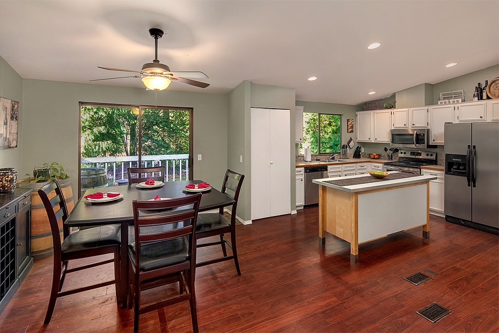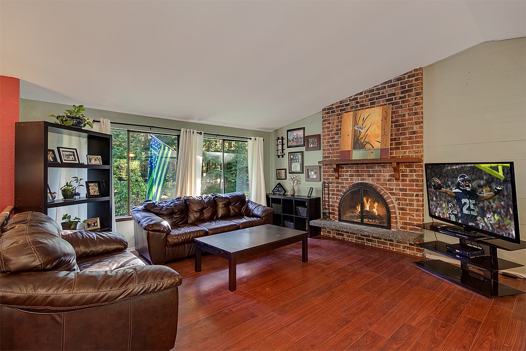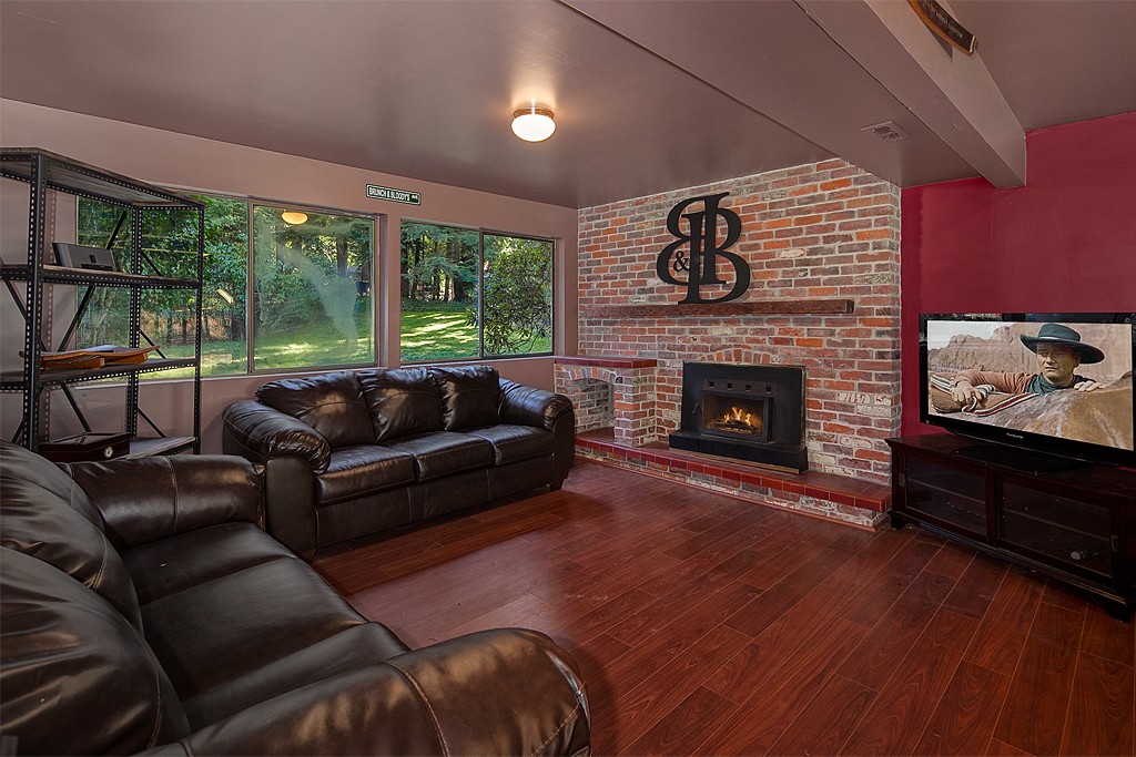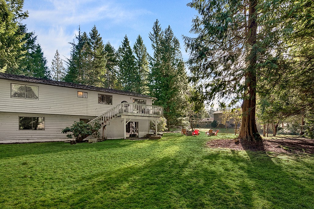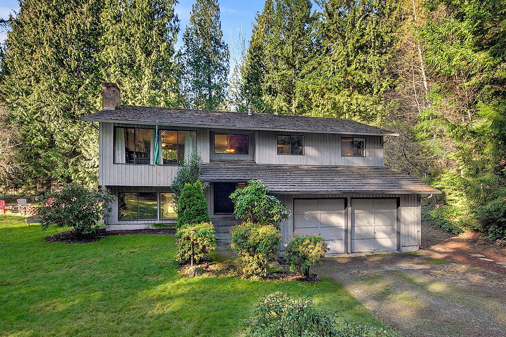 Charming home w/ perfect layout & beautiful grounds in desirable Cottage Lake area. Airy, open-concept main floor great rm for entertaining, w/ Brazilian Cherry floors, dining rm, living rm w/ fireplace & updated kitchen w/ SS apps & island. Roomy master suite. Downstairs: dream rec rm w/ bar, fireplace, space for home theater/game rm, extra bed & bath nice for guests. Forest like grounds w/ towering cedars & level, fenced private 1-acre lot. Large fire pit. 2 car garage. Northshore Schools.