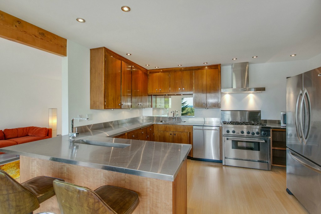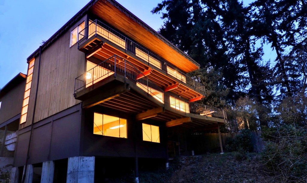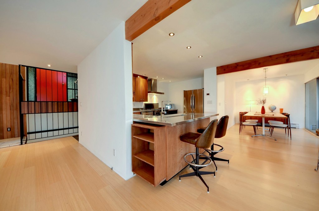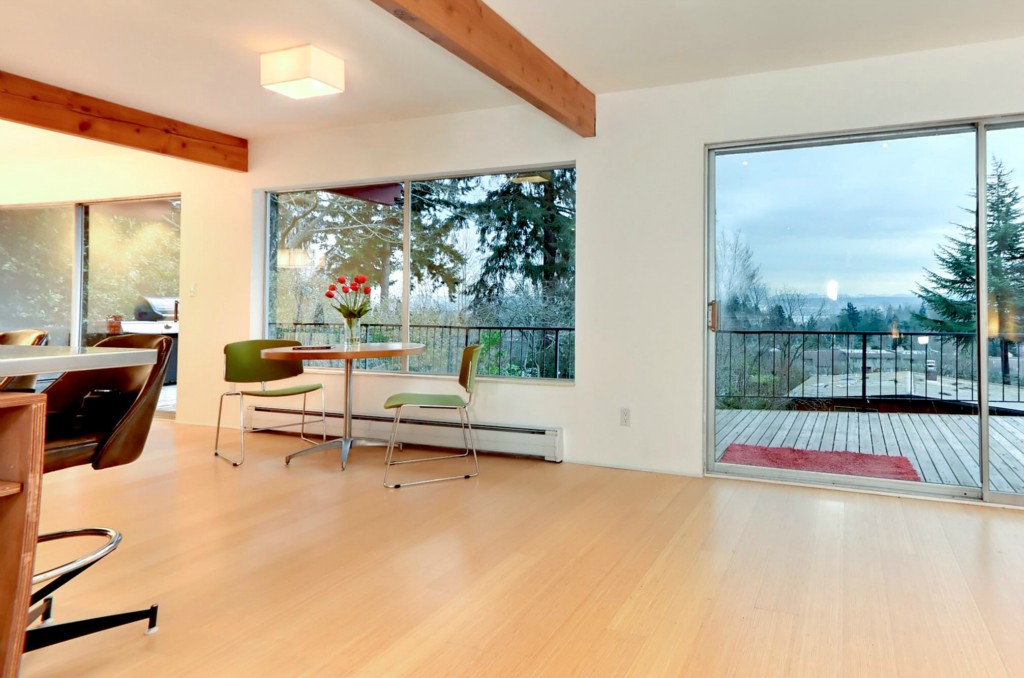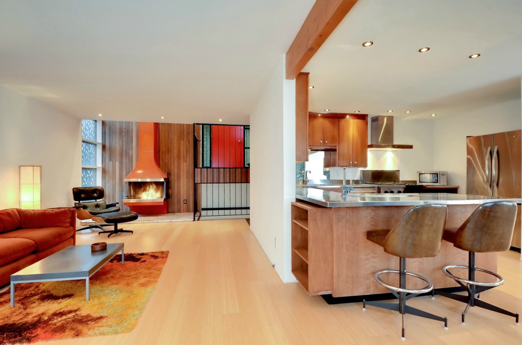 Much bigger in back 3 story walls of glass Lake WA Cascades, Kirkland view Near Children's, Burke G Trail, Metro Mkt U/W Was briefly listed at high price been off mkt the last month. No Photoshop pix the flame is real! Architect designed hip modern 7 yr remodel copper drains pex new line gas hot water zoned heat. Laundry views koi pond. TPO roof mat'l +insulation perfect drainage stainless chef kitch 6 burner Thermador. Massive beams, 7 sinks! 5 ten ft glass drs new panel. 1960's mod meets 2015!