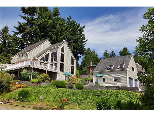 Enjoy incredible Views of the Shipping Lanes & Olympic Mtns. from every level of this spacious Contemporary home. Kitchen, dining, living areas flow easily to entertainment size deck. Home features main floor mstr, 2 additional en-suite rooms, Custom updated Baths & Kitchen, loft, office/den, media room, game room & Mother-in-law apartment, w/separate entrance, over detached 2 bay garage. Recent upgrades incl On Demand H/W, Hard surface flooring upper level master, stairs & porch to Studio/MIL.