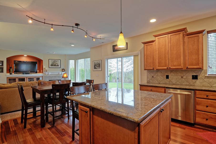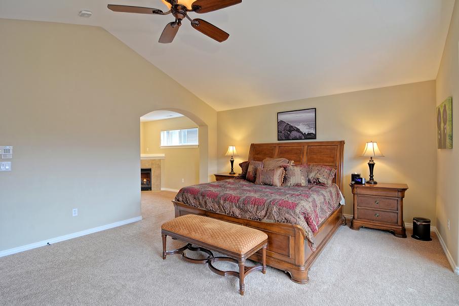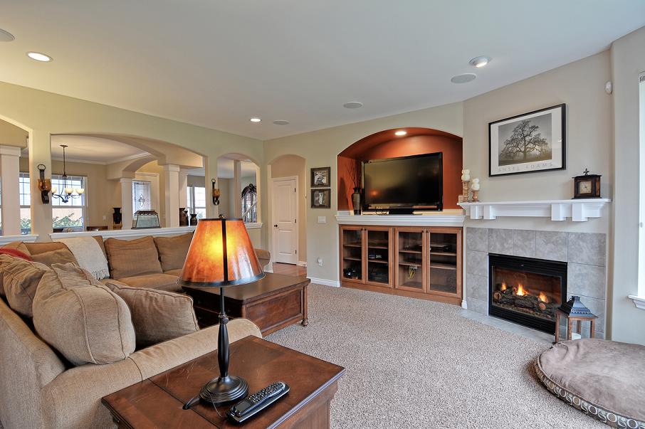 Charming 4 Bed craftsman in VerCello welcomes you home to a spacious open floor plan decorated w/ archways, rich hardwood & beautiful tile floors. Gourmet kitchen has granite, high end S/S double oven, 5 gas burner stove, warming drawer & butler's pantry. Many upgrades: tankless water heater, central air, surround sound & skylights. Huge Master suite w/ French doors, fire place, sitting room & deluxe bath. Extra 300 sq.ft. of bonus room. Fenced yard & patio backs onto green belt & walking trail.