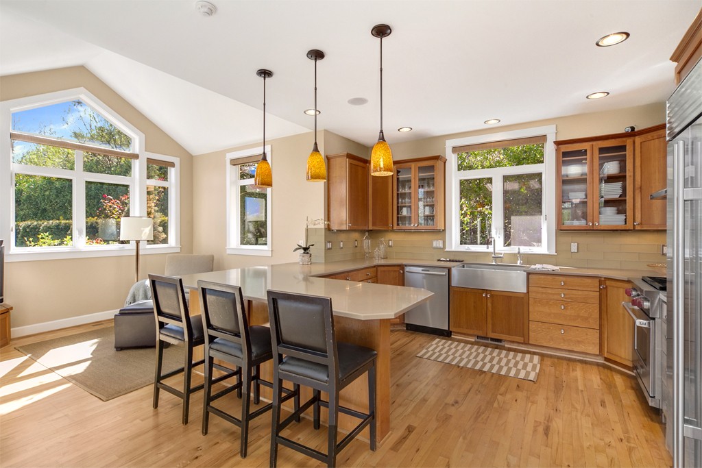Enjoy extraordinary views of Rich Passage. Beautiful home on a little over an acre of all day sun. Lovingly remodeled, this tri-level home has been designed for entertaining. Kitchen offers SS appliances & limestone counters. Top floor master w/views, spa-inspired bth, 2nd bdrm/bth w/views & an Office/Media room w/built-in media center. Guest Suite w/bath & deck. Lower level hosts a gym, guest quarters w/kitchenette, bth & laundry. Mature beautiful gardens surround Bocce ball court! Special!